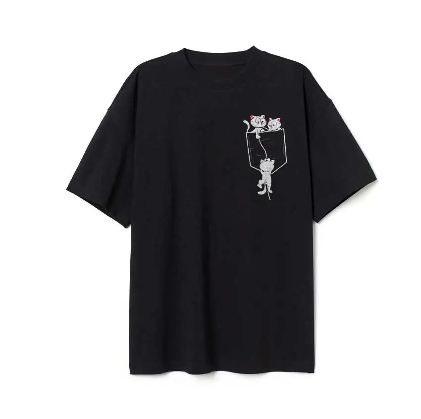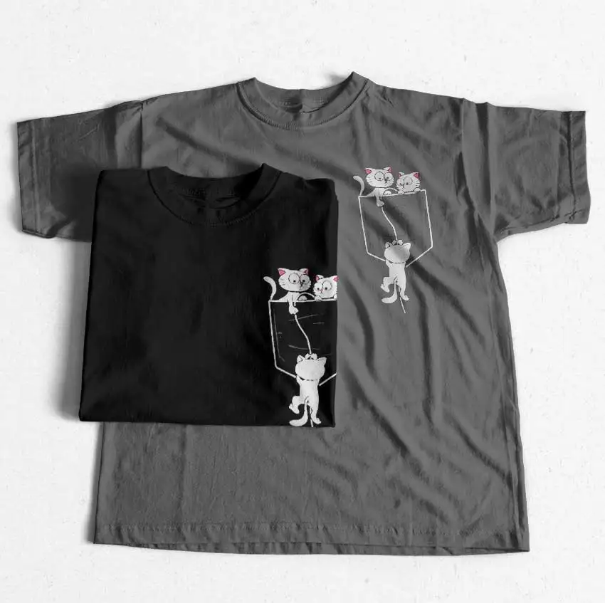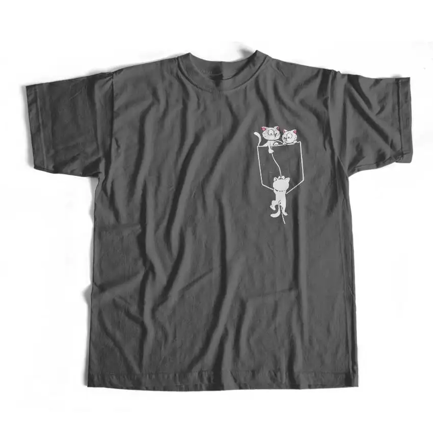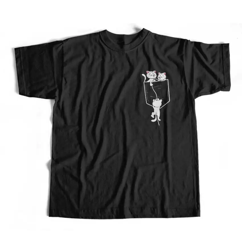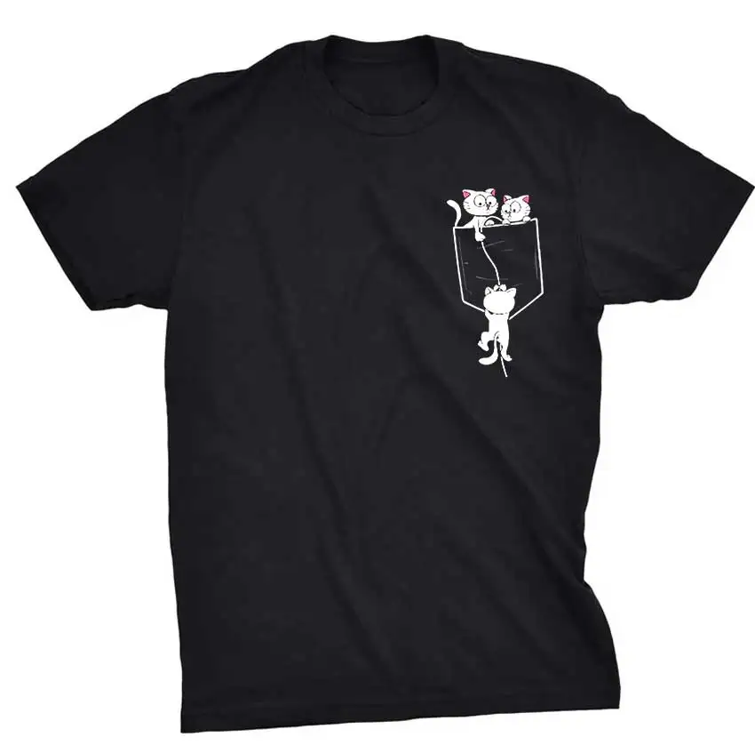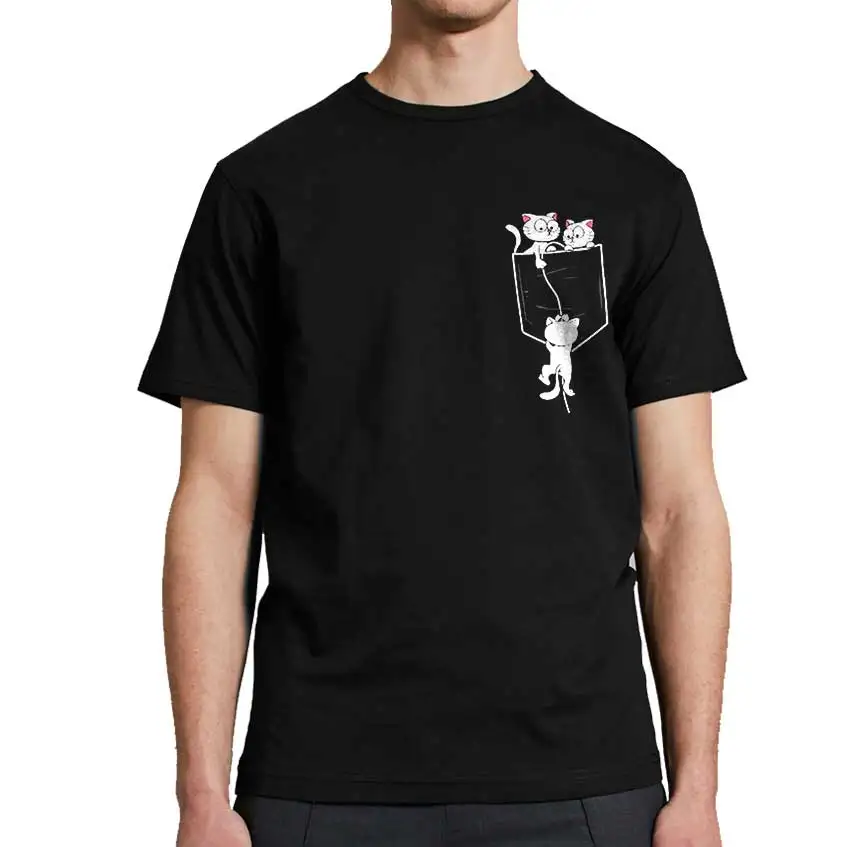Футболка COSMIC мужская с круглым вырезом, тенниска унисекс с карманом для влюбленных, крутая майка с коротким рукавом и принтом кошки, большие размеры, 100% хлопок
