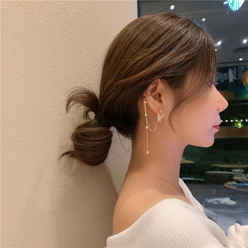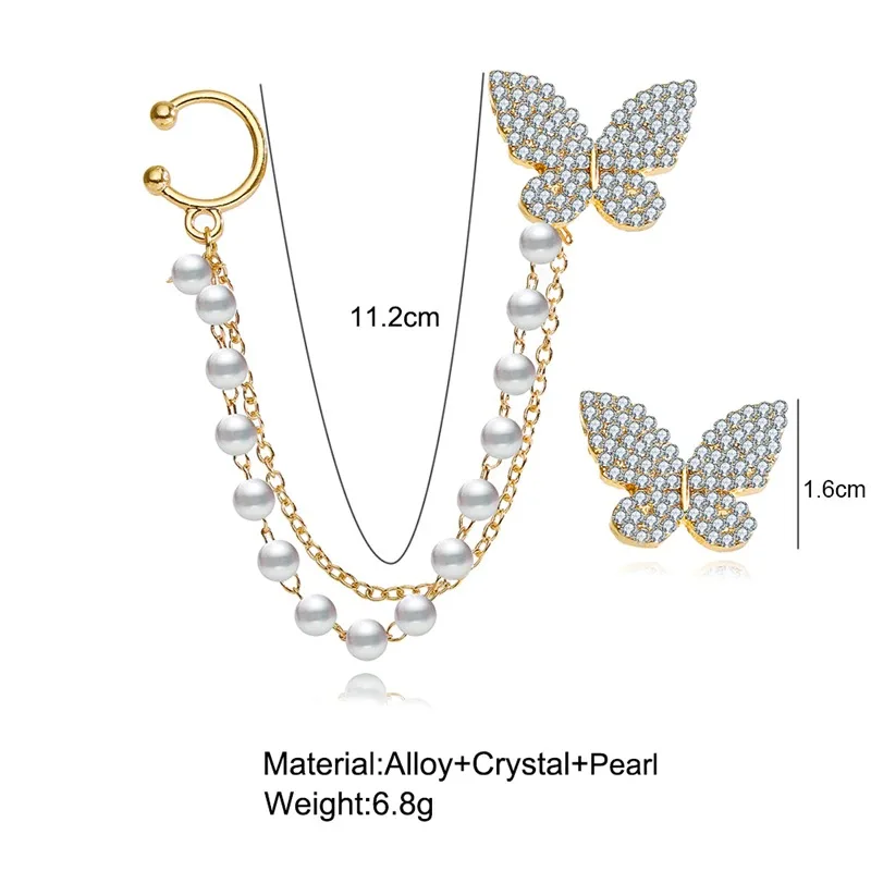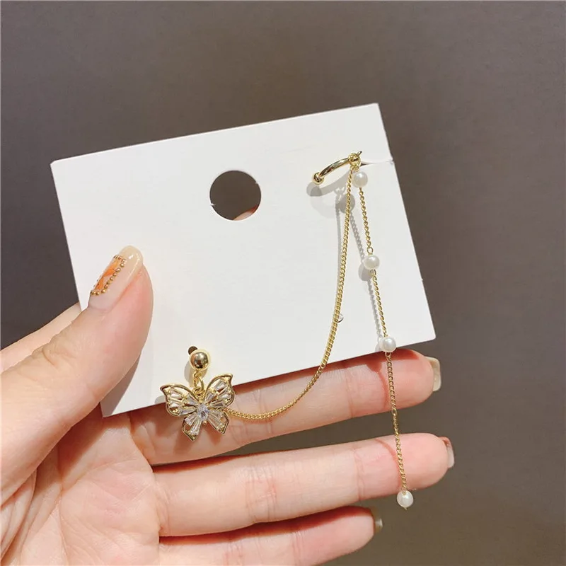 Элегантные ассиметричные серьги Стразы в форме бабочки для женщин и девушек милые модные серьги-цепочки с жемчугом корейские Ювелирные изделия Подарки