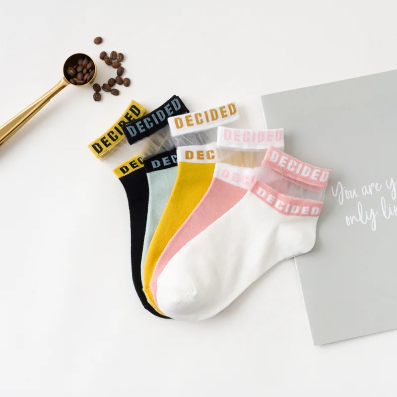 1 партлот прозрачные женские носки для лета весны осени носки для девочек с буквами тонкие шелковые Дышащие Короткие носки забавная лодка