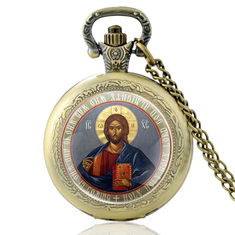Ретро бронзовые стеклянные кабошоны для православной церкви, кварцевые карманные часы, винтажные мужские и женские часы с подвеской и ожерельем, подарки