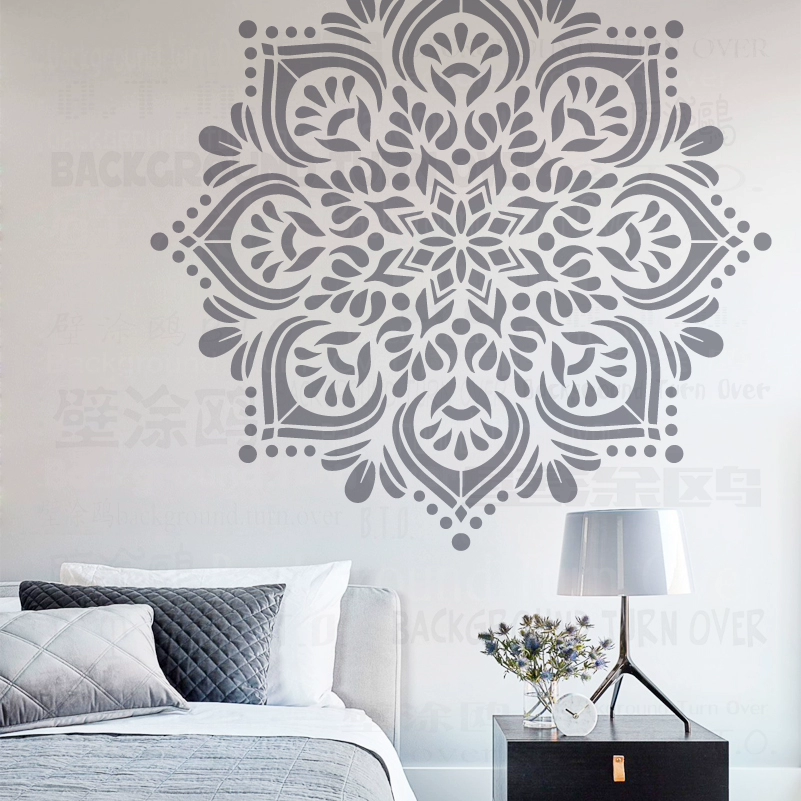 Трафарет 80 см-120 см для украшения стен, большой шаблон для покраски мебели, огромная мандала, потолок, индийский, арабский, этнический, Круглый, S197