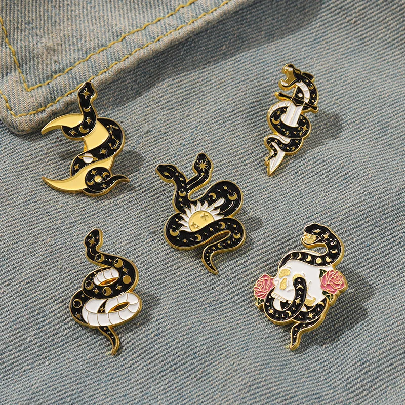Металлическая эмалированная брошь в виде звезды, Луны, змеи, цветка