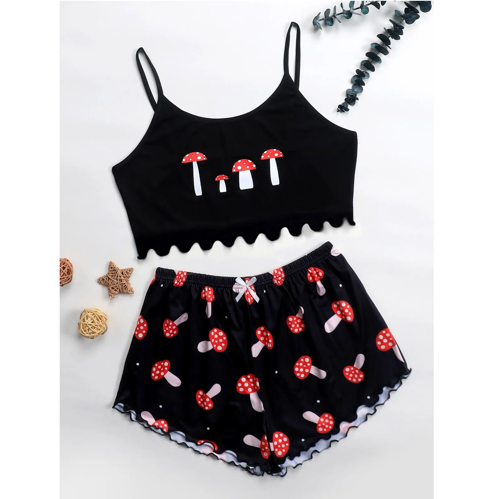 Пижамный комплект с принтом в виде грибов на бретелях-спагетти, пиж...