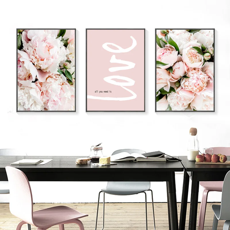 Скандинавский розовый цветочный постер с принтом пионов розы настен...