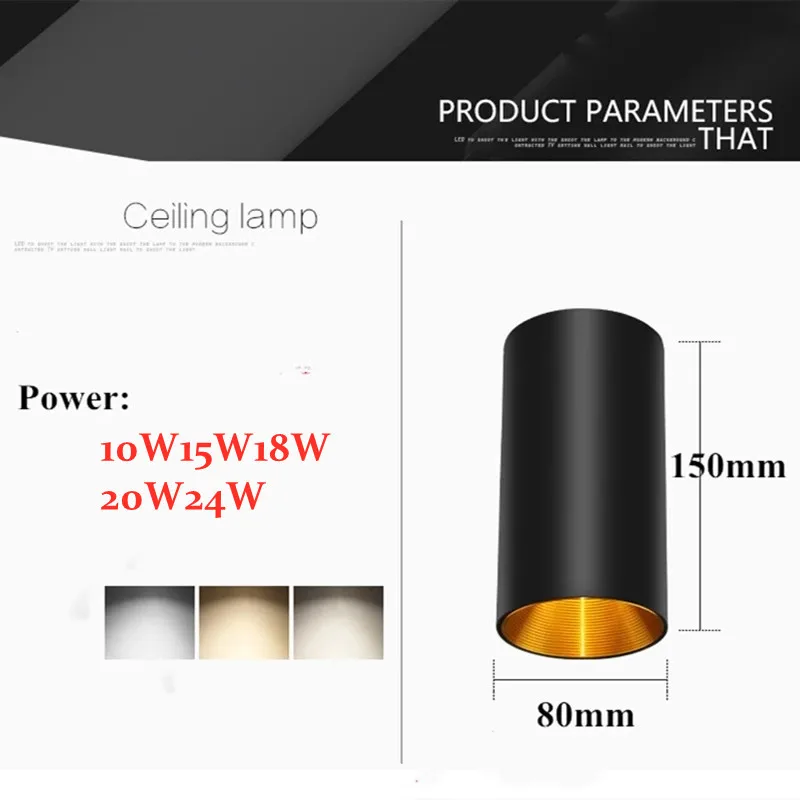 Диммируемый светодиодный светильник с поверхностным креплением, 24 Вт, 20 Вт, 18 Вт, 15 Вт, 10 Вт, монолитный блок светодиодов, потолочный светильник, точечный светильник, 90 260 В переменного тока, фоновая лампа с чипом CREE