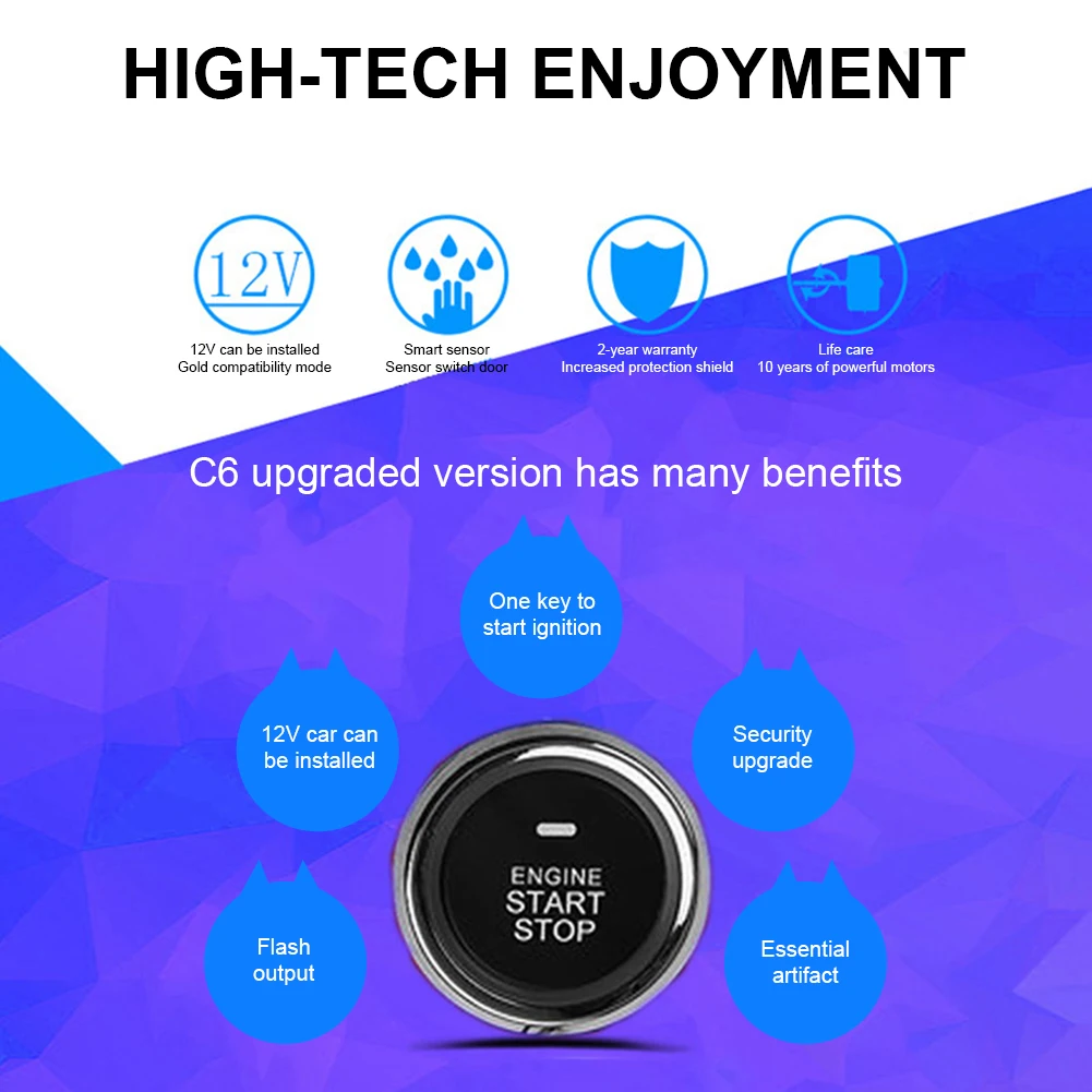 * 4. Автоматическое противоугонное устройство: Запирайте дверь автоматически, когда сигнал оставит автомобиль на 3 метра. Без пульта дистанционного управления Управление зажиганием одной кнопкой не может быть безопасно модернизировано, чтобы обеспечить безопасность вашей собственности.