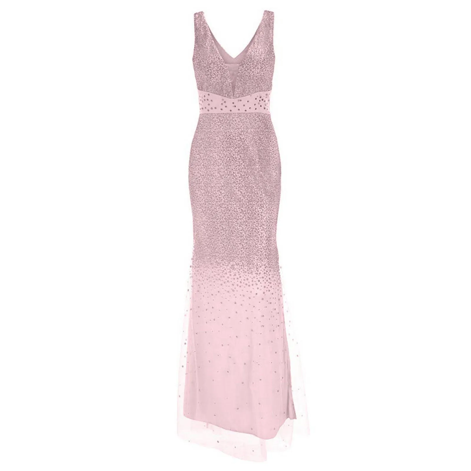 Женское длинное Платье с V-образным вырезом, разрезом и блестками