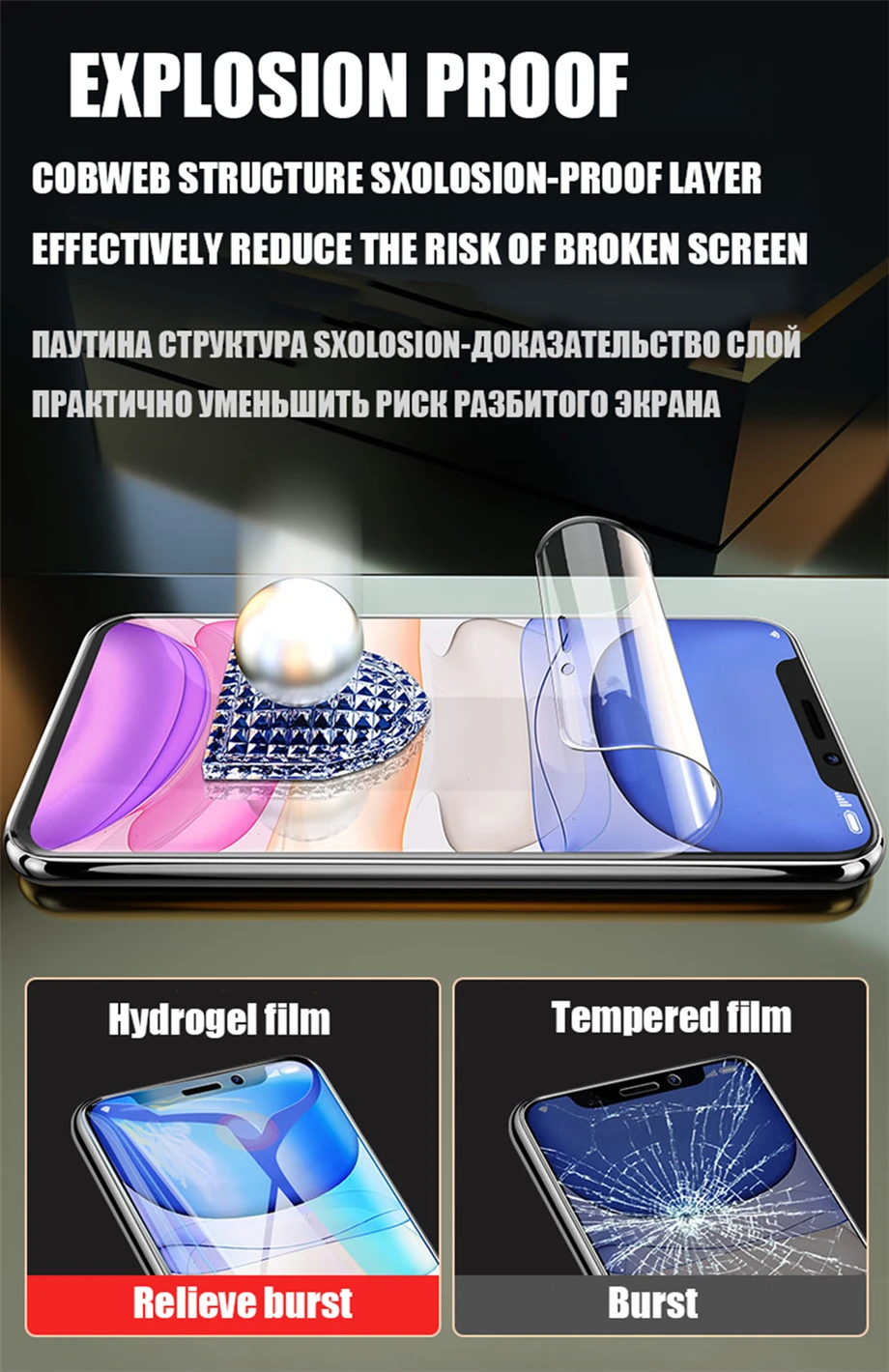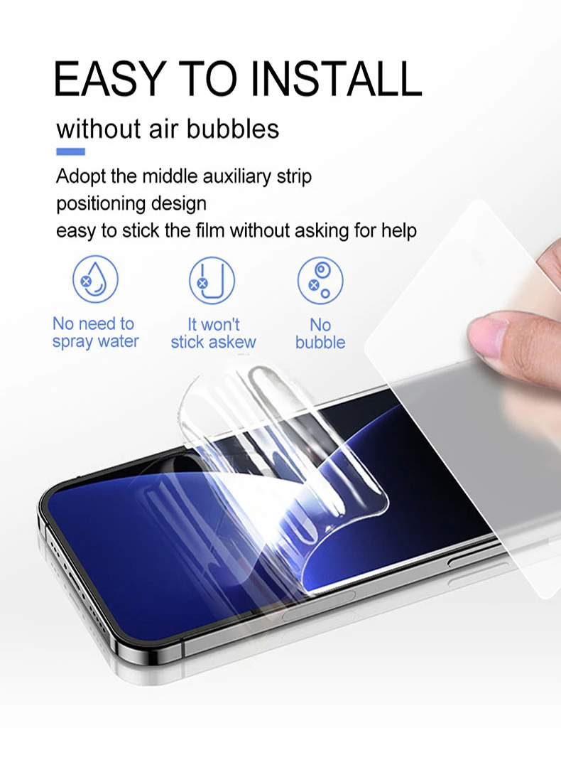 Особенности и характеристики:-Новая мягкая Гидрогелевая пленка обеспечивает высокую степень защиты вашего экрана.-Гидрофобное и олеофобное покрытие может предотвратить окрашивание вашего телефона масляными пятнами, отпечатками пальцев и другими пятнами.-Ультратонкий и прозрачный дизайн для обеспечения высокой четкости просмотра.-Высокая чувствительность и отклик, как и оригинальный экран-Царапины на экране восстановятся естественным образом, чем тоньше, тем быстрее-Значительно повышает прочность экрана, не нужно беспокоиться о хрупкости экрана при ежедневном использовании-Мягкая Гидрогелевая пленка является наиболее подходящей защитной пленкой для изогнутых экранов на рынке.Руководство по установке:Мы предоставим вам видео для объяснения установки, Новая мягкая Гидрогелевая пленка не требует каких-либо вспомогательных инструментов, и процесс установки простСписок товаров:1 x абсолютно новая Гидрогелевая мягкая пленка appleЗащитная пленка для объектива-1 шт.1 x чистящий набор1 специальный скребок