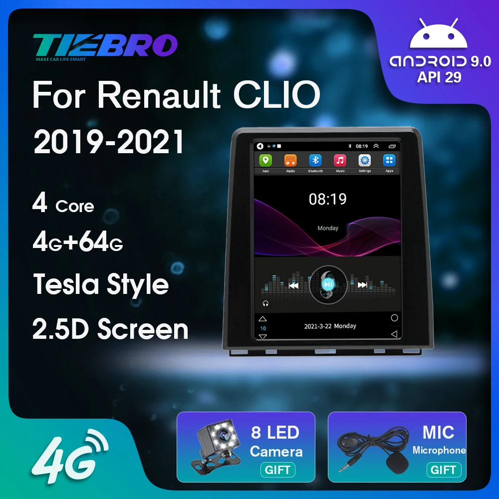 Автомобильный радиоприемник 2DIN Android 9,0 для Renault Clio 2019 2020 2021 Tesla Style, автомобильный мультимедийный плеер, навигация GPS Bluetooth 4G