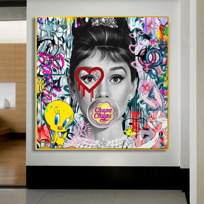 Уличный поп-арт Хепберн искусственная живопись граффити рисунок настенный плакат для украшения дома