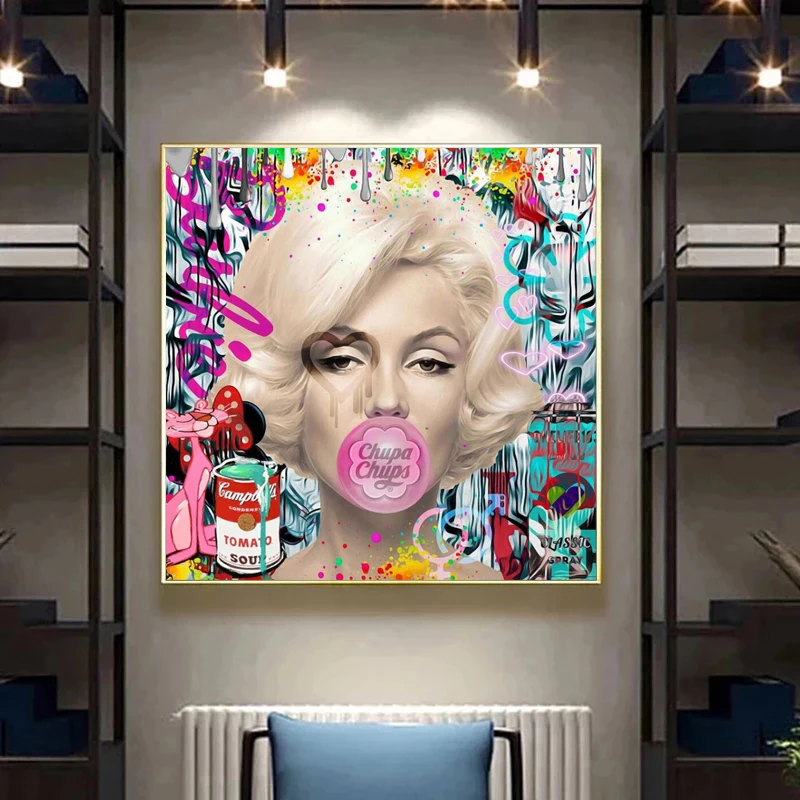 Граффити искусство Мэрилин Монро портрет, холст, живопись поп-улица...