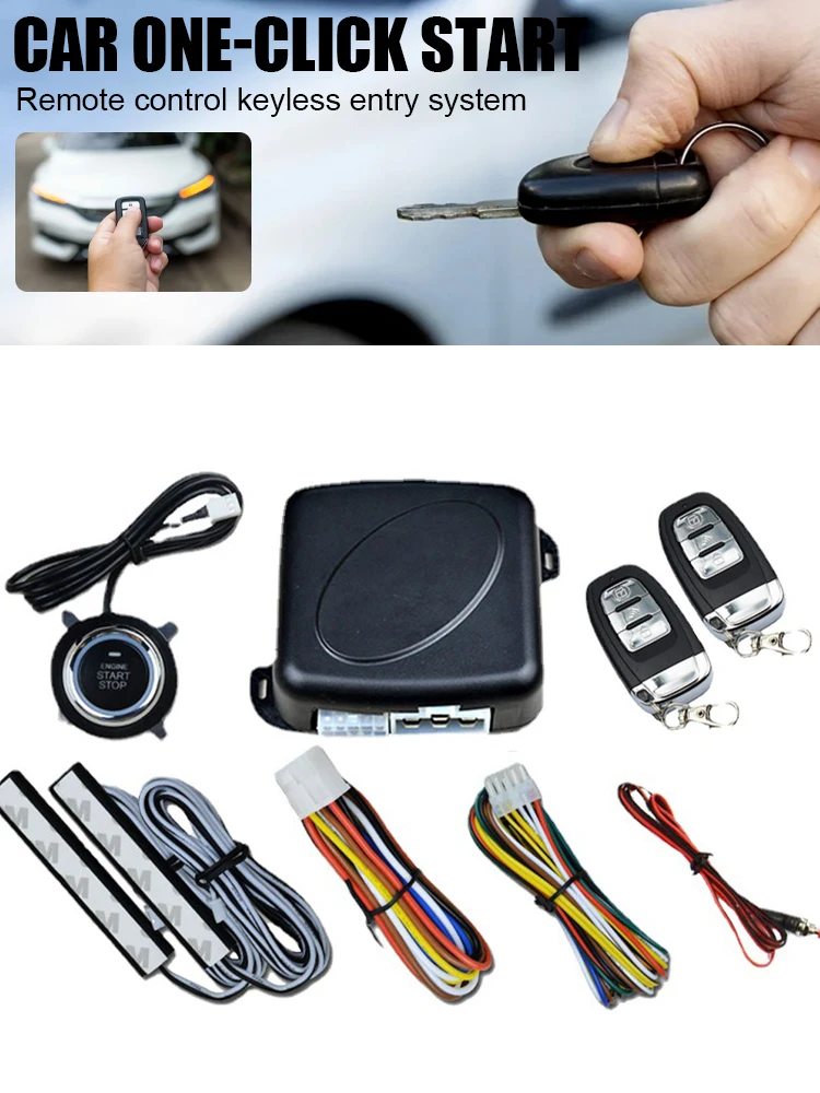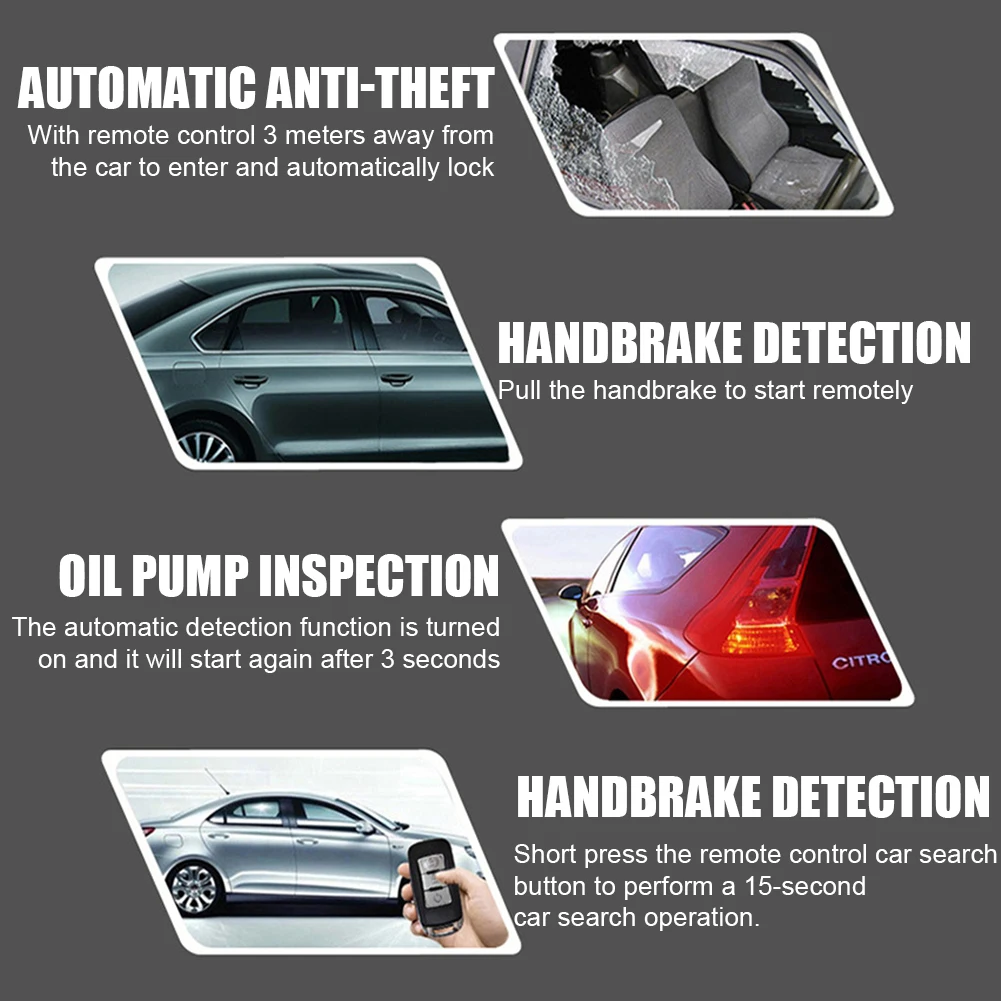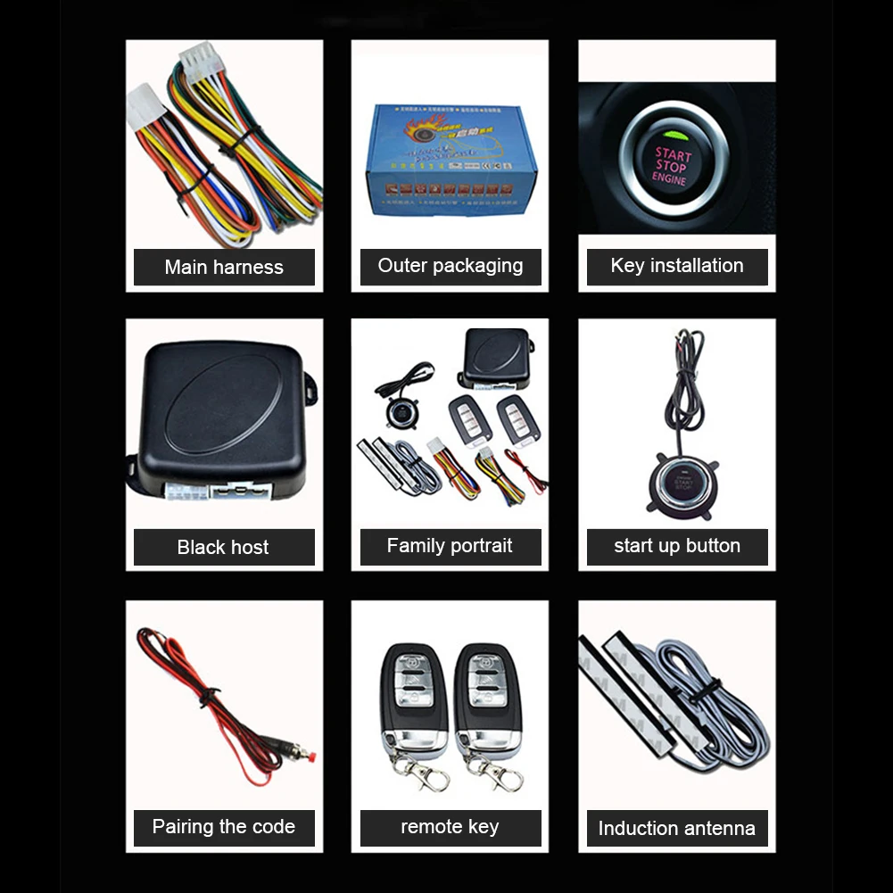 * 4. Автоматическое противоугонное устройство: Запирайте дверь автоматически, когда сигнал оставит автомобиль на 3 метра. Без пульта дистанционного управления Управление зажиганием одной кнопкой не может быть безопасно модернизировано, чтобы обеспечить безопасность вашей собственности.