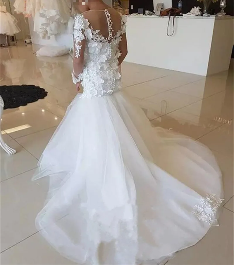 Официальное Прозрачное платье с длинным рукавом и цветочным принтом для девочек, свадебное платье с аппликацией и круглым вырезом, платье для дня рождения и первого причастия для девочек, платье принцессы