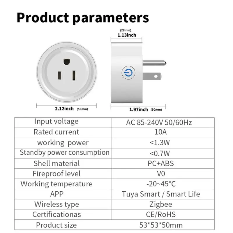 Умная розетка Aubess10A Zigbee, розетка с монитором питания, управление через приложение, работает с Alexa Google Assistant