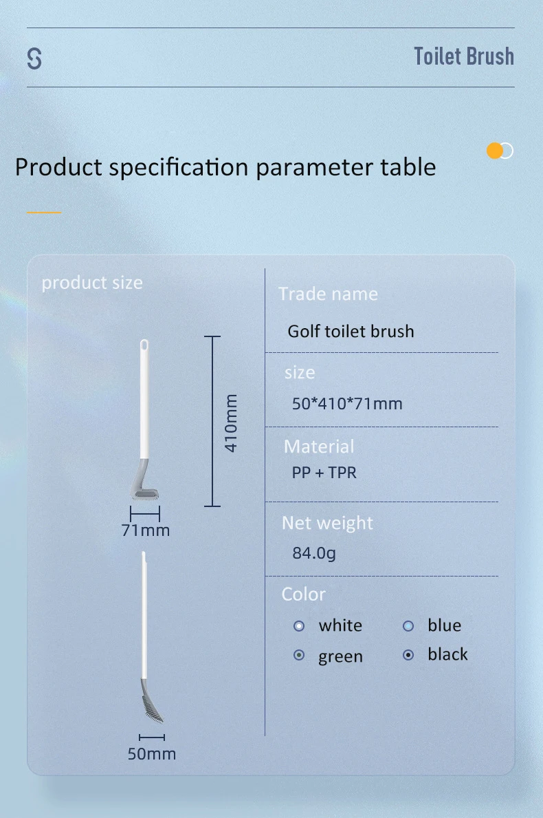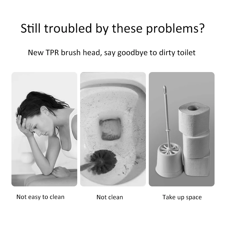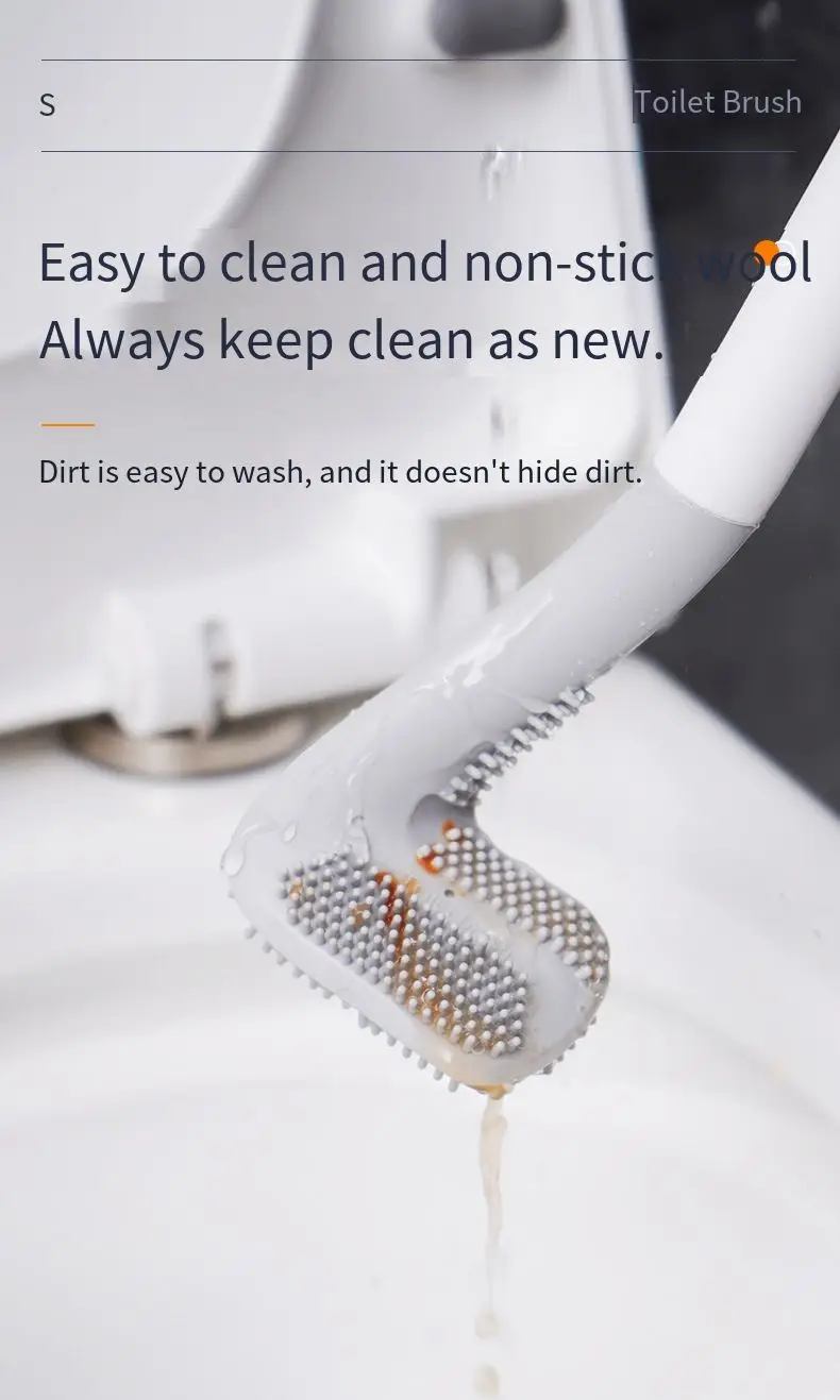 [Резиновая головка щетки 360 °] мягкая TPR (термопластичная резина) щетина не царапает поверхность туалета. Силиконовые щетинки обладают хорошей чистящей способностью, могут войти в край унитаза и являются хорошим материалом против твердой воды. Он не захватывает грязь и легко чистится, не изнашивается и не сбрасывается, чтобы сохранить идеальный эффект очистки.[Силиконовая головка щетки] мягкая TPR, силиконовые щетинки обладают хорошей чистящей способностью, могут войти в край унитаза, Глубокая чистка, не повредит фарфоровую глазурь.[Основа] уплотненный базовый материал PP прочен и не накручивается, его также можно повесить на стену. Внизу есть вентиляционное отверстие, и под ним не будет скопления воды. Он может быстро сохнуть и более эффективно поддерживать гигиену.[Противоскользящая и устойчивая к ржавчине ручка] прочная ручка PP с хорошим захватом. Только одно касание, вы можете совершенно Очистить Новые пятна.[Хорошее сокрытие] компактная туалетная щетка подходит для туалетов или раковин в узких пространствах. На боковой стороне держателя туалетной щетки есть лента, которую можно повесить на стену, чтобы сэкономить место. Хороший помощник в ванной.[Чистые мертвые углы]: щетка для унитаза не только прочная, но и жесткая. Гибкая головка щетки может очистить все области внутри туалета, особенно канавки.