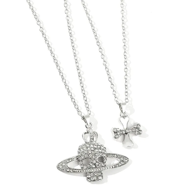 Модное металлическое Ожерелье Стразы серебристого цвета с черепом и Сатурном в стиле ретро панк для женщин и мужчин ювелирные изделия с подвесками для вечеринок аксессуары