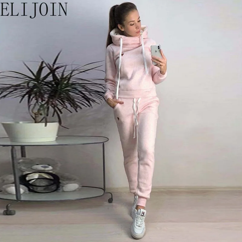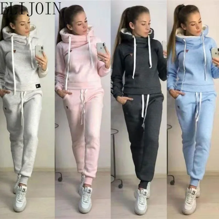 ОсеньЗима 2021 модный кашемировый свитер с капюшоном однотонные брюки Повседневный женский спортивный костюм