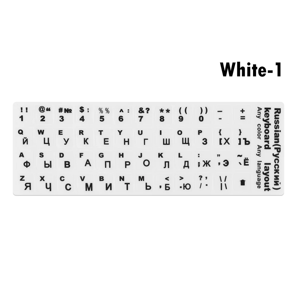 1 шт. износостойкие наклейки на клавиатуру Нескользящая раскладка алфавита замена клавиатуры Испанский/английский/русский/японский/Арабский <;br/>100% абсолютно новый и высококачественный.<;br/> наклейки на клавиатуре на нескольких языках могут решить ваши проблемы с набором текста.<;br/> удобный и элегантный внешний вид, пыленепроницаемый и износостойкий.<;br/> даже если он используется в течение длительного времени, Это будет нелегко выпустить слова.<;br/> совместимы со всеми 10-дюймовая шпилька или больше Клавиатура ноутбука и клавиатуры компьютера.<;br/> Простота в использовании, просто прикрепите их к клавиатуре ноутбука, и никакого клея не останется, когда вы их удалите.<;br/> отличный способ обновить изношенную клавиатуру с новым внешним видом.<;br/> характеристики:<;br/> Цвета: Белый & amp; Черный Материал PC<;br/> размер изделия: 18*6,5 см/7*2,56 дюйма (Д * Ш * В):<;br/> каждый ключ Размеры: 1,3*1,1 см/0,51*0,43 дюйма (Д * Ш * В):<;br/> Вес продукта: 4,85 г/0,17 унций <;br/> список посылка:<;br/>1 * наклейка на клавиатуру