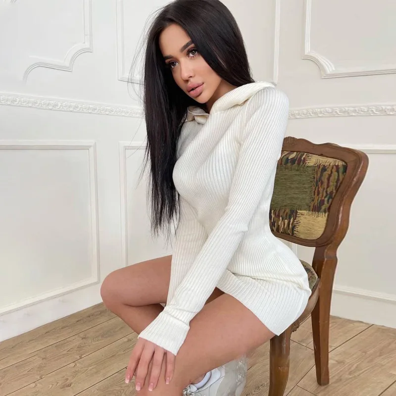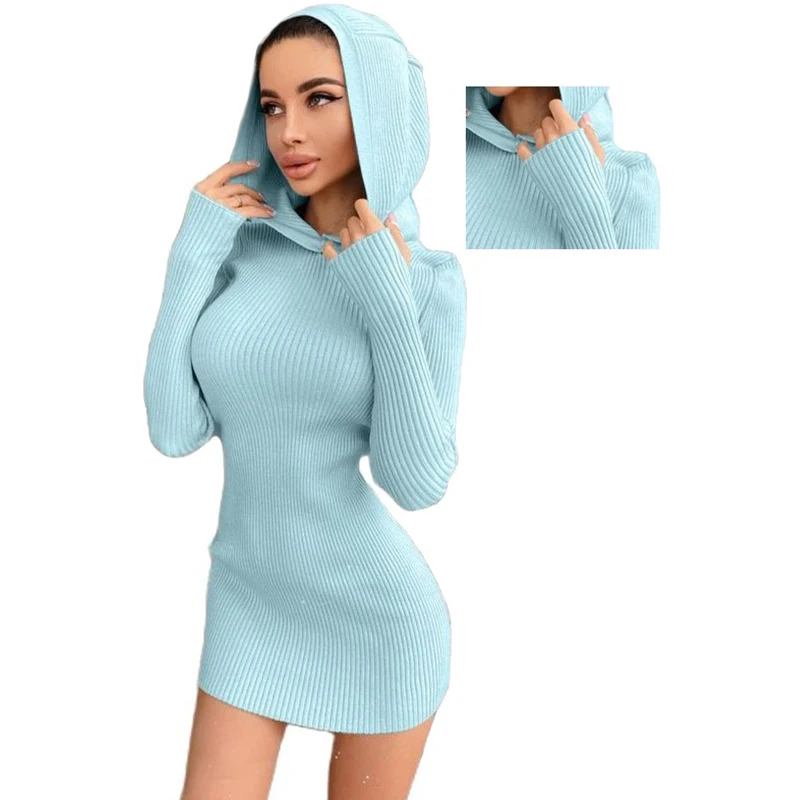 Облегающее трикотажное платье с капюшоном, женские короткие пикантн...