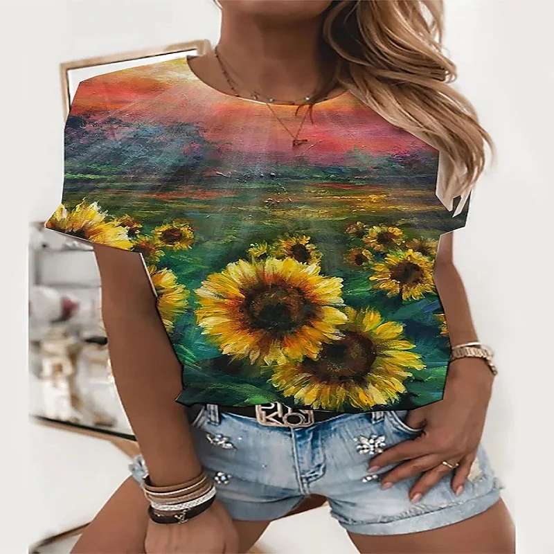 Футболка женская оверсайз с желтым цветочным принтом кота