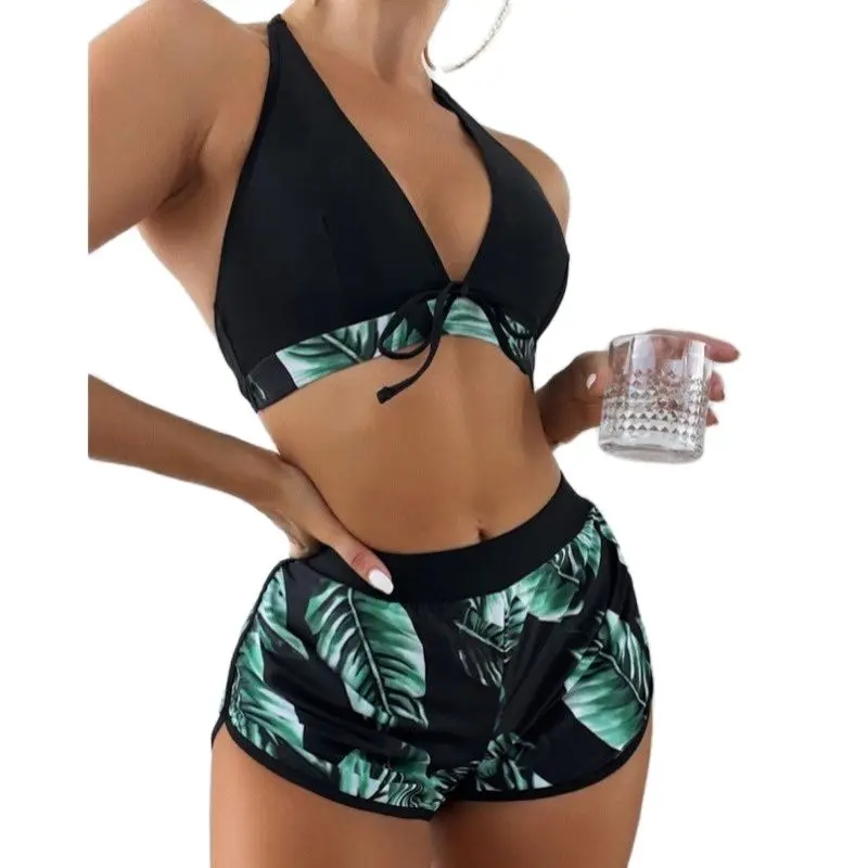 Летний черный принт, Новое сексуальное пляжное бикини, женский купа...