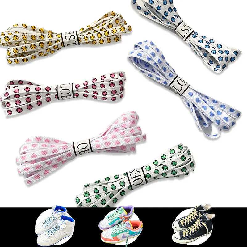 Милые шнурки со смайликом в форме сердца для мужчин и женщин, трендовые повседневные спортивные высокие шнурки для баскетбола желтого, зеленого, белого цветов, Прямая поставка