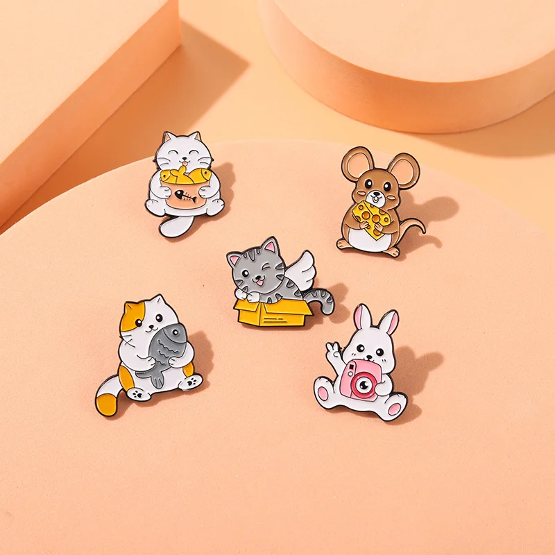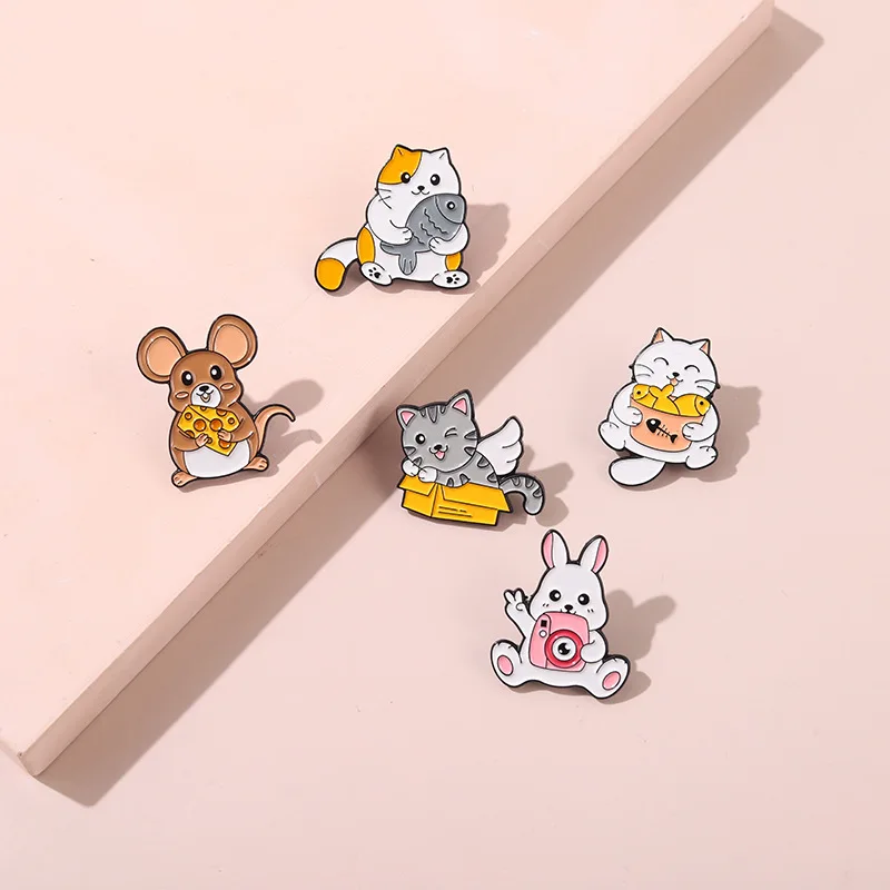 Мультяшные животные эмалевые заколки кошка рыба мышь сыр кролик сим...