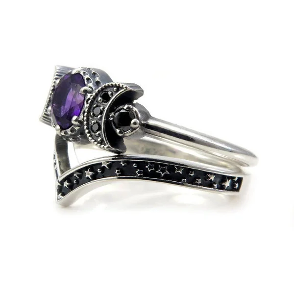 кольцо женское бижутерия для женщин 2022 украшения женские украшеНабор Колец Hecate с тройной луной, обручальные кольца из серебра и черного фианита для женщин, свадебные подарки, дизайнерские ювелирные изделия, кольца