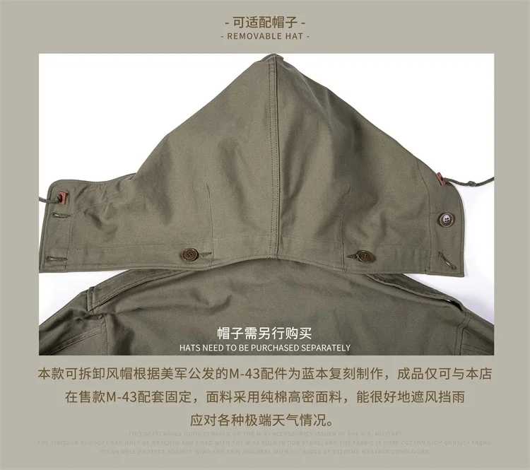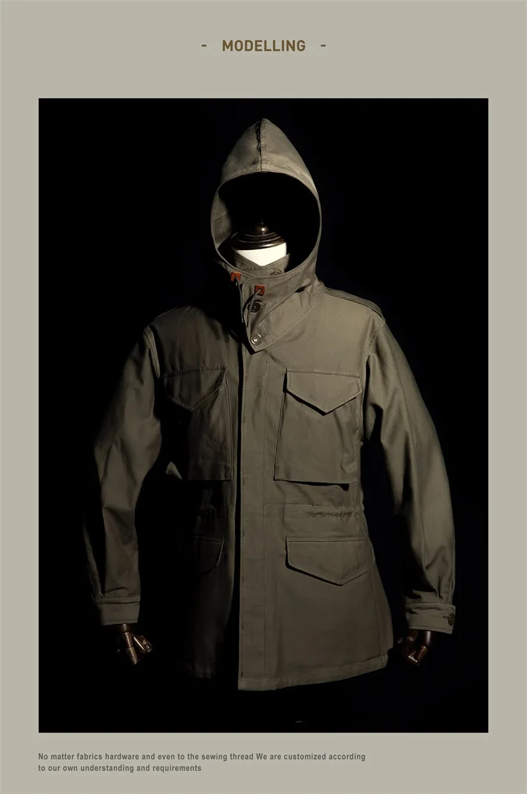 Женская винтажная свободная облегающая куртка большого размера из хлопчатобумажной ткани M43 с капюшоном на выбор