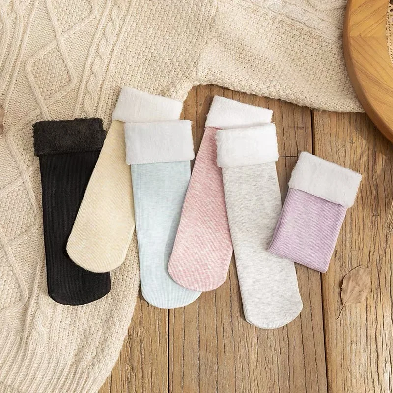 Теплые носки, зимние женские утепленные теплые шерстяные кашемировые носки для снега, бесшовные мягкие однотонные бархатные сапоги, носки для сна в Пол унисекс