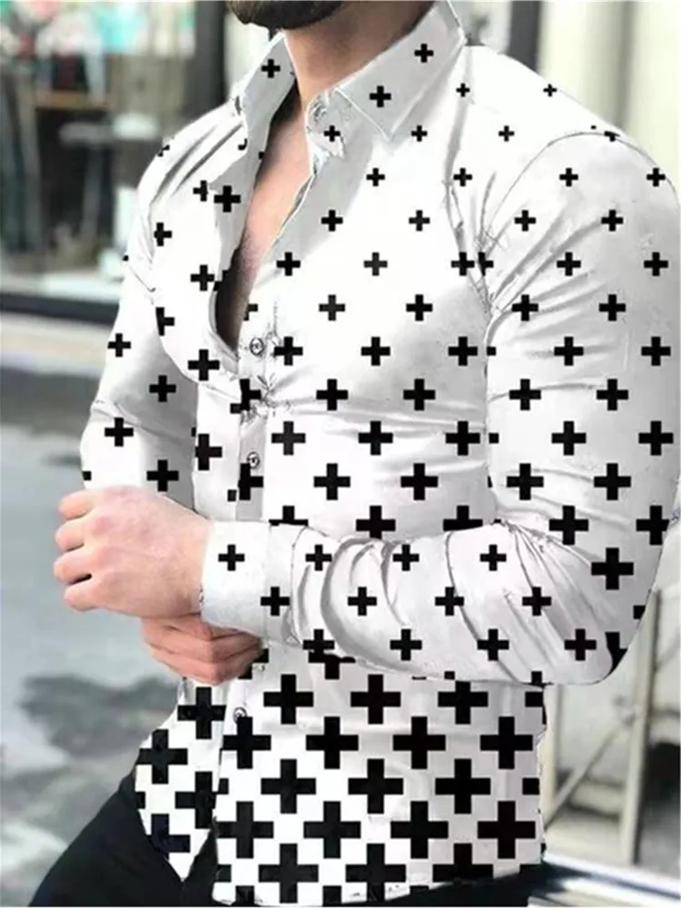 Рубашка мужская с геометрическим принтом, модная повседневная с отл...