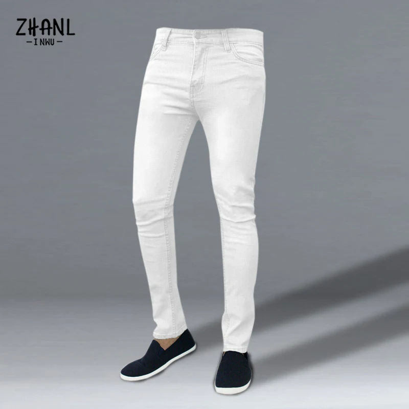 Новинка 2021, серые, синие, черные джинсовые мужские брюки, повседневные облегающие джинсовые брюки, модная одежда, распродажа, мужские джинсовые брюки