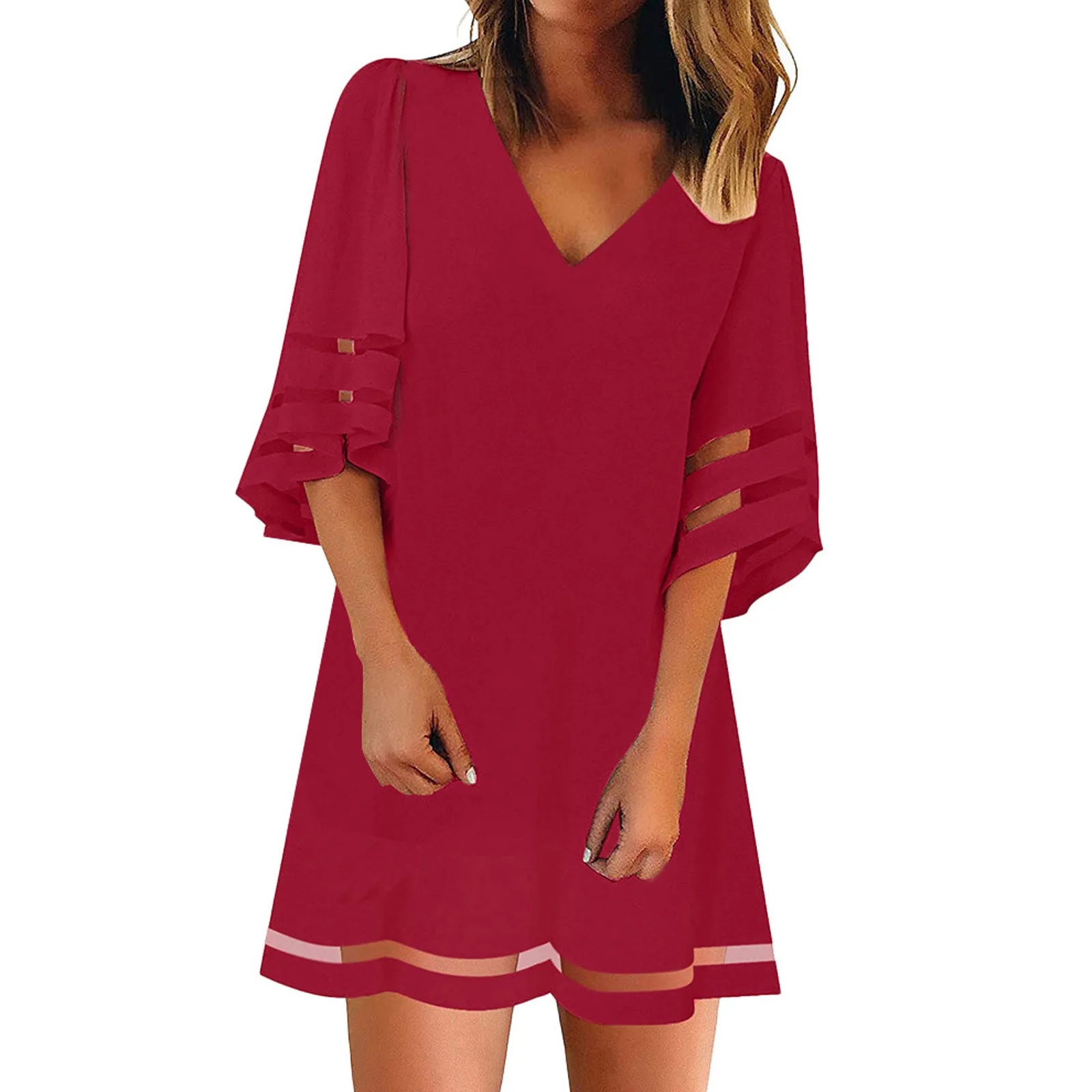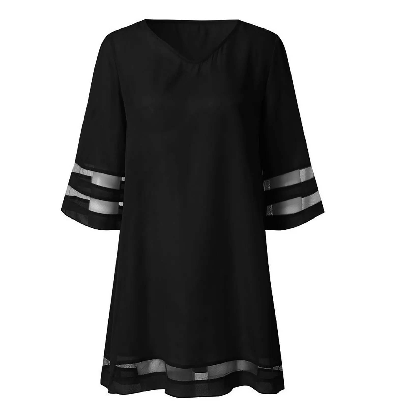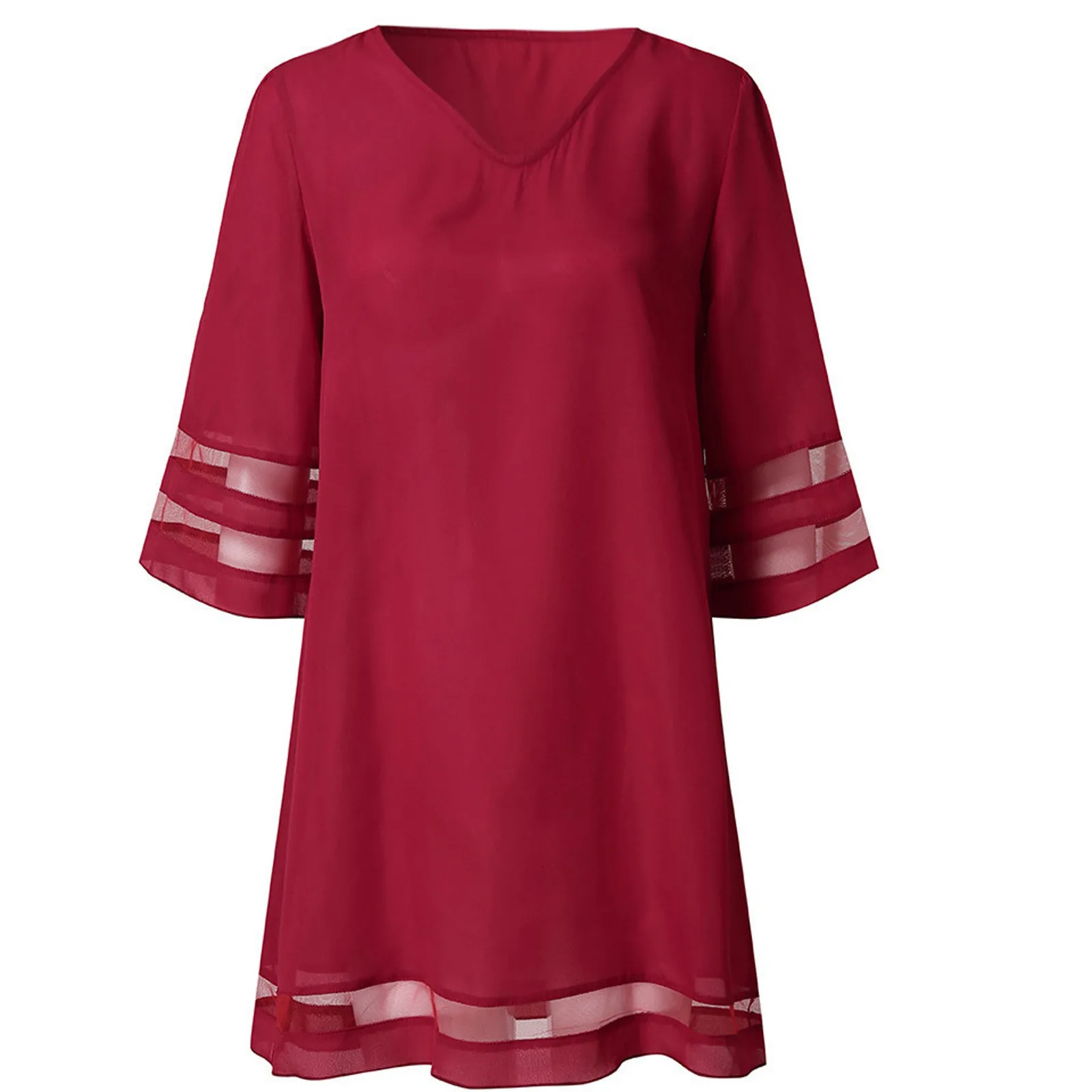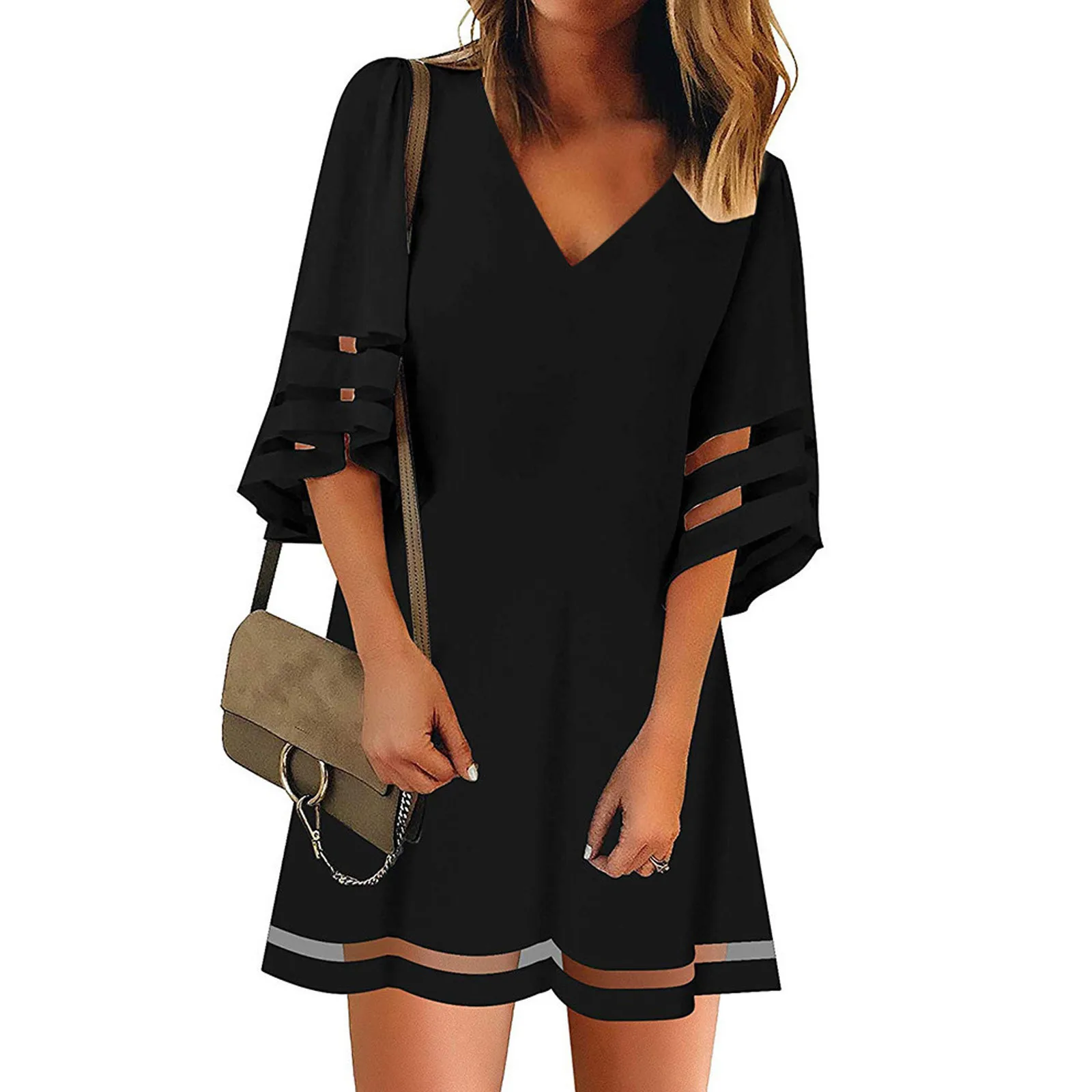 Женские платья с V-образным вырезом, сетчатая панельная блузка 34, модное свободное платье с рукавами-колокольчиками, элегантное платье, Подарочный комплект, одежда для Альта # snr