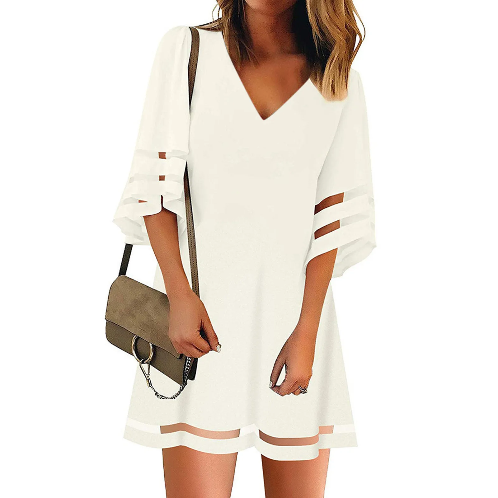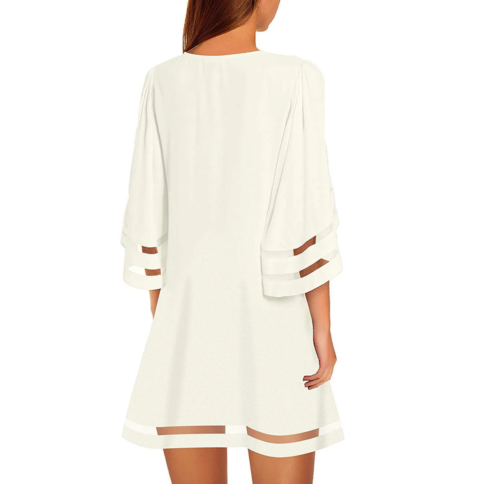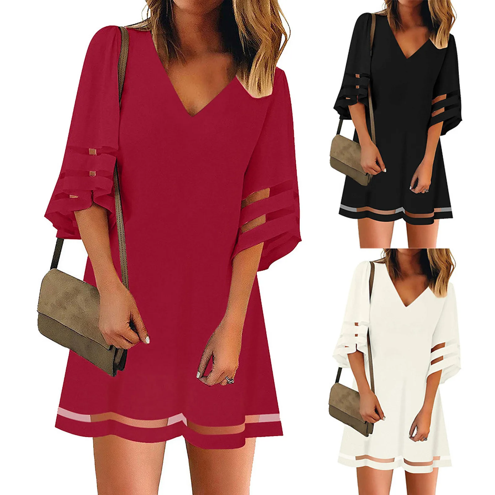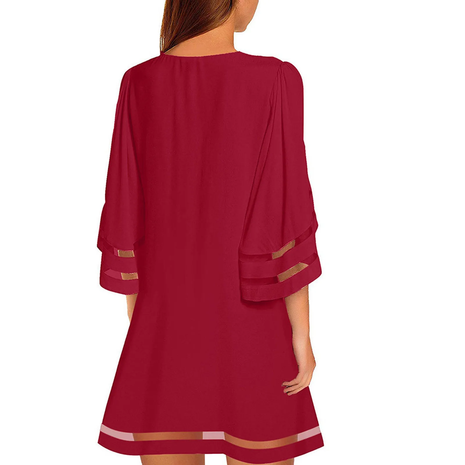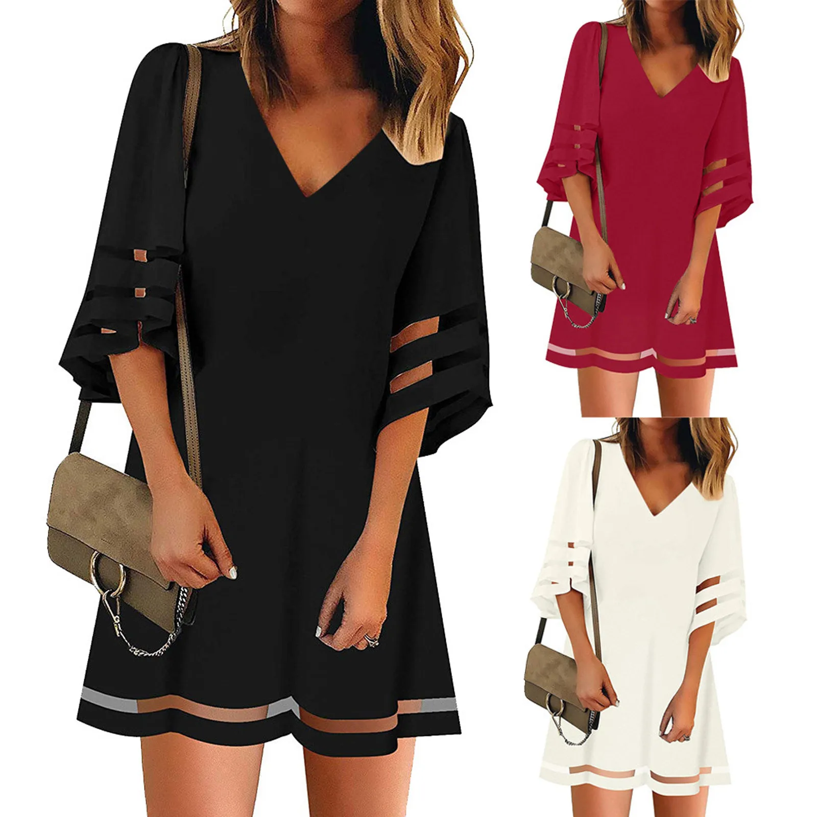 Женские платья с V-образным вырезом, сетчатая панельная блузка 34, модное свободное платье с рукавами-колокольчиками, элегантное платье, Подарочный комплект, одежда для Альта # snr
