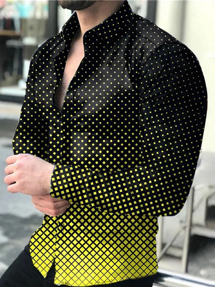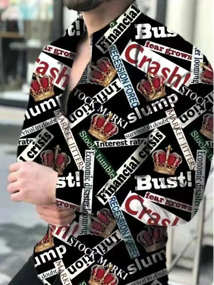 Рубашка мужская с длинным рукавом, Повседневная модная блуза с прин...