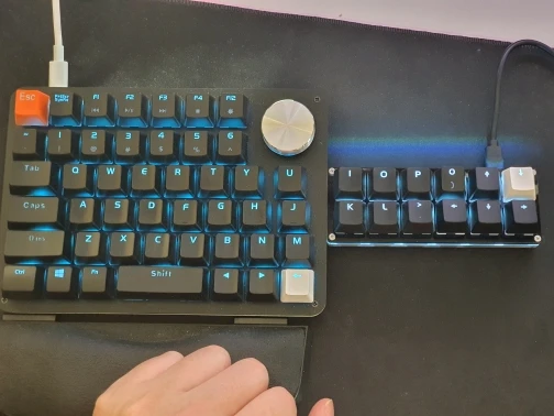Очень забавное изготовление на заказ. Rgb Освещение доступно, но я сделал его синим, чтобы соответствовать моей другой клавиатуре.