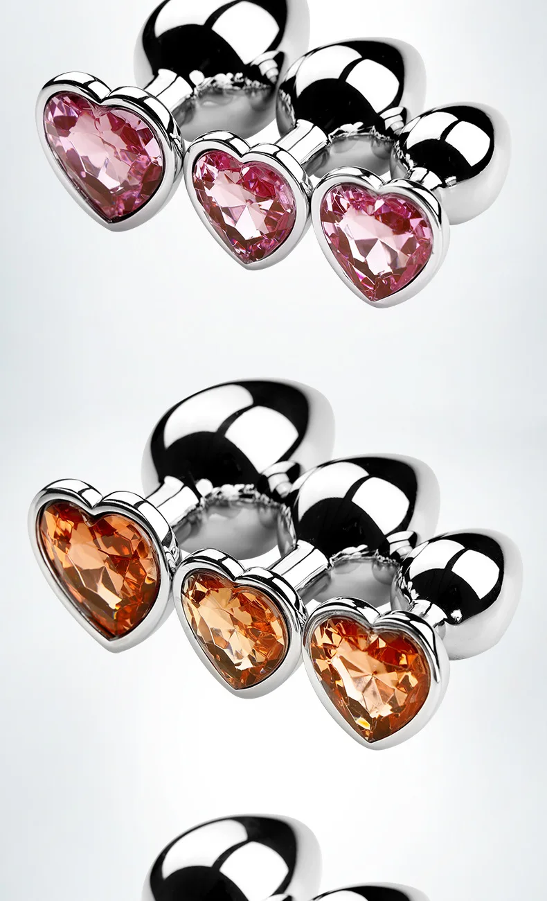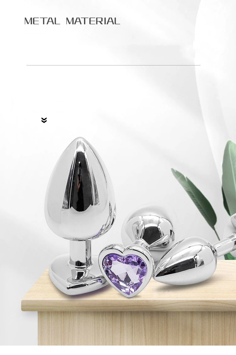 Анальная пробка 3 размера, анальная пробка из нержавеющей стали с кристаллами в форме сердца, съемная Анальная пробка, секс-игрушки для предстательной фантазии
