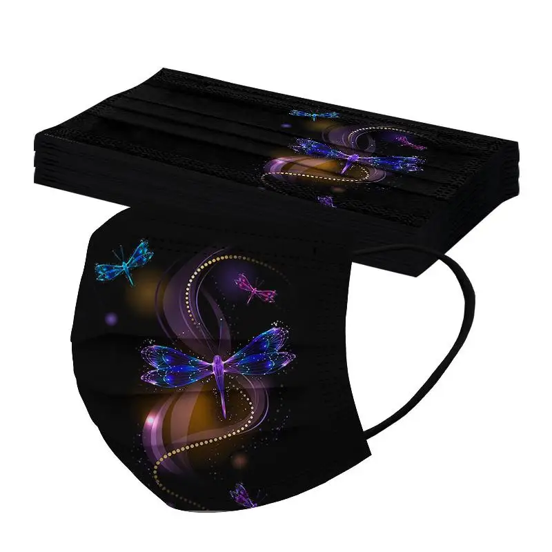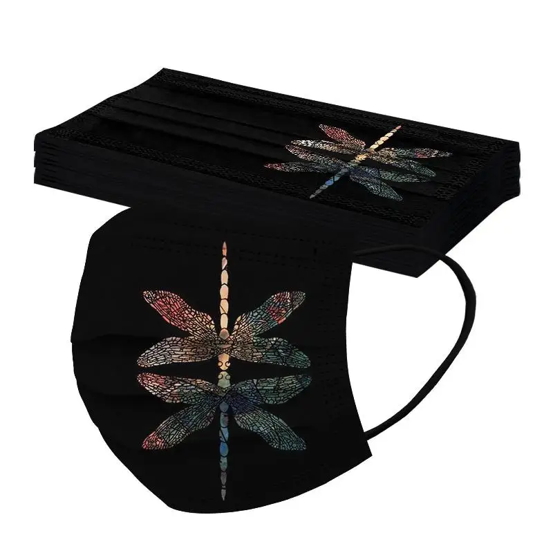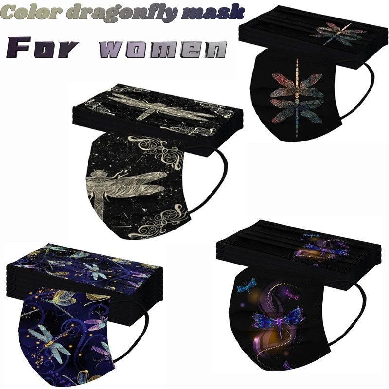 Новинка 2022 маски для взрослых женщин цветная маска для рта с рисунком стрекозы черные одноразовые маски для защиты от вирусов маски