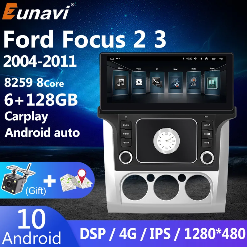 Eunavi Android 10 автомобильное радио для Ford Focus 2 3 Mk2 MK3 2004 2005 - 2011 хэтчбек Мультимедиа Видео плеер GPS 2Din 2 Din Carplay