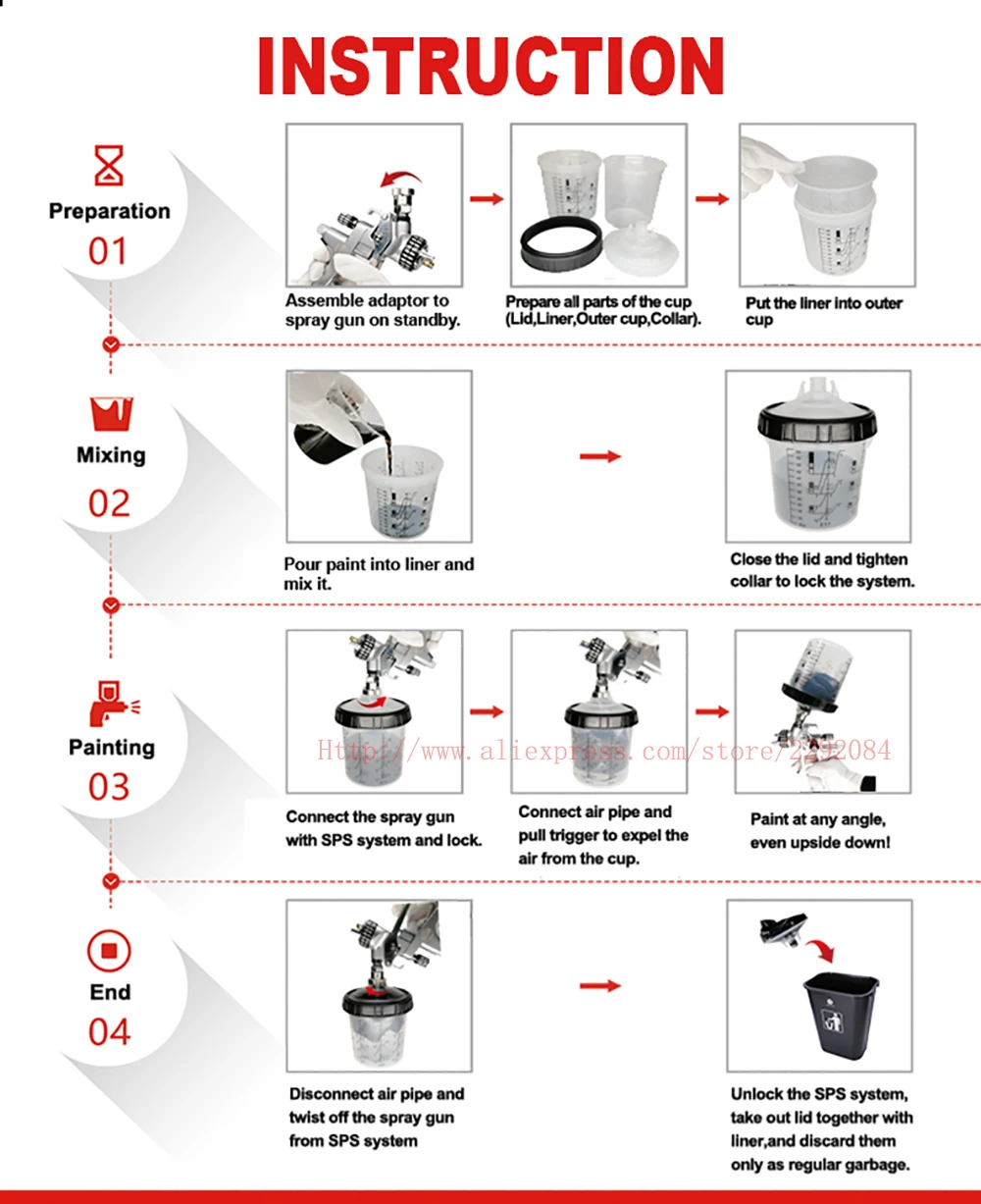 Меньше отходов, больше эффективности-меньше отходов краски, беспорядка и загрязнения, чем традиционные методы. Используйте до 70% меньше растворителя для очистки и сократите время подготовки и очистки на 50% по сравнению с обычными металлическими системами стаканчиков для краски.