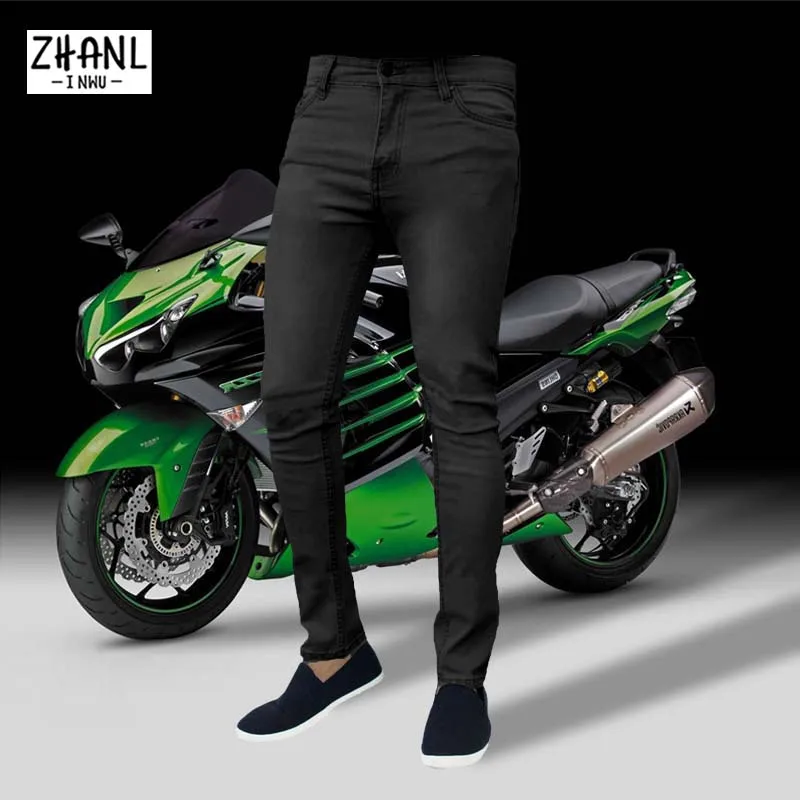 Модные синие облегающие джинсы, мужские брюки, уличная одежда, узкие джинсы с эластичным поясом, классические брендовые эластичные джинсы в стиле хип-хоп, мужская одежда