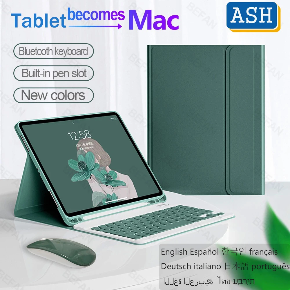 Беспроводной чехол ASH с клавиатурой и мышью для Samsung Galaxy Tab S7 FE S7 Plus S6 Lite A7 10,4, умный тонкий защитный чехол из искусственной кожи
