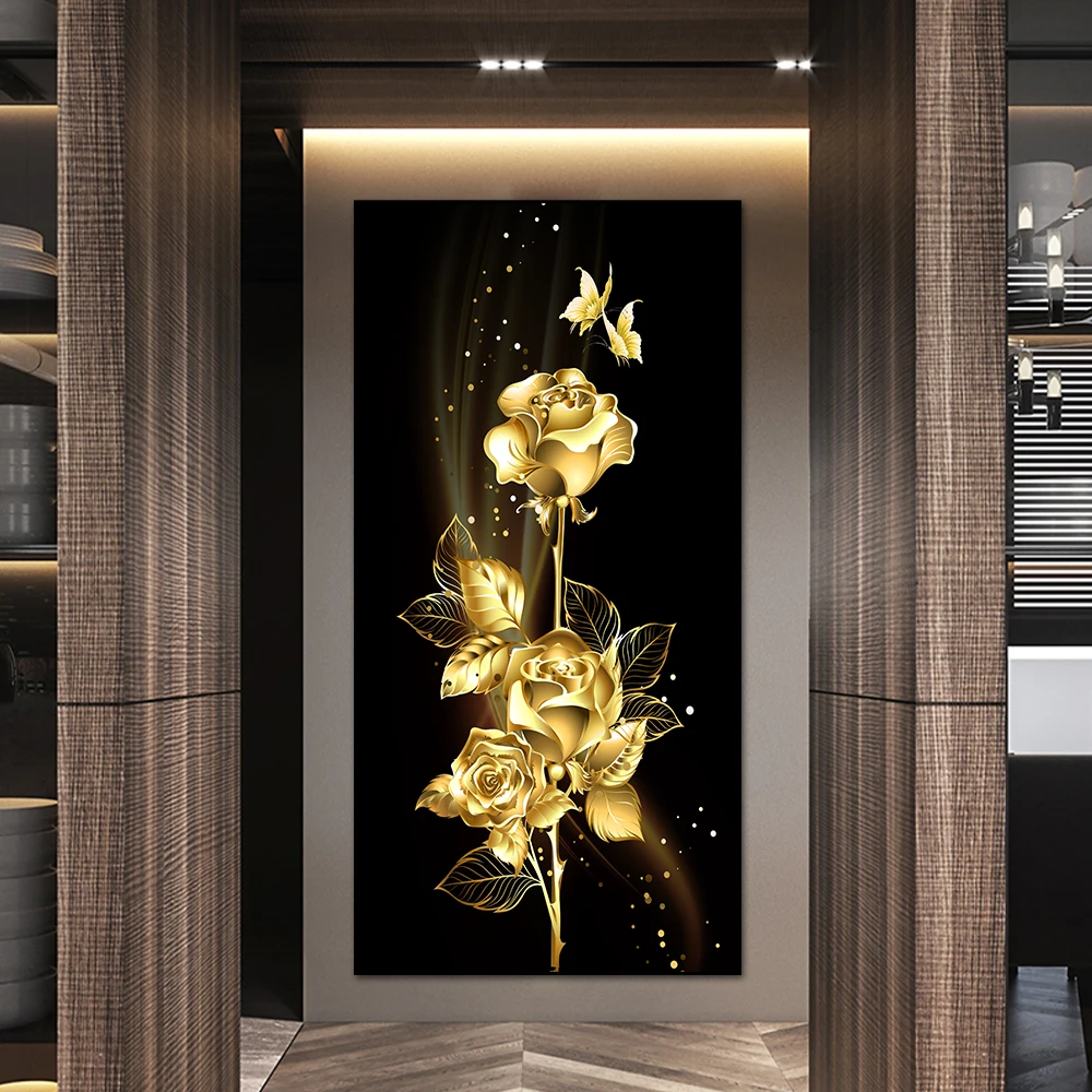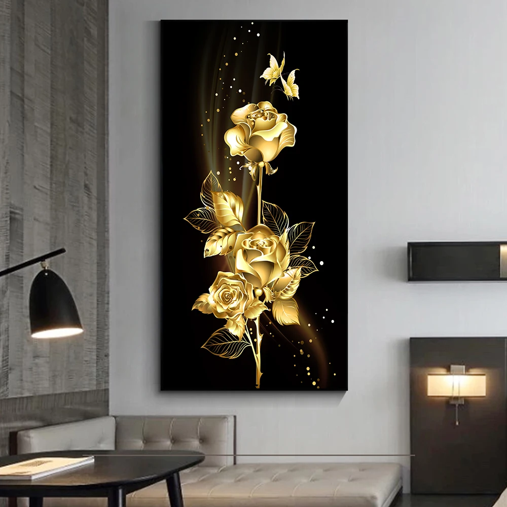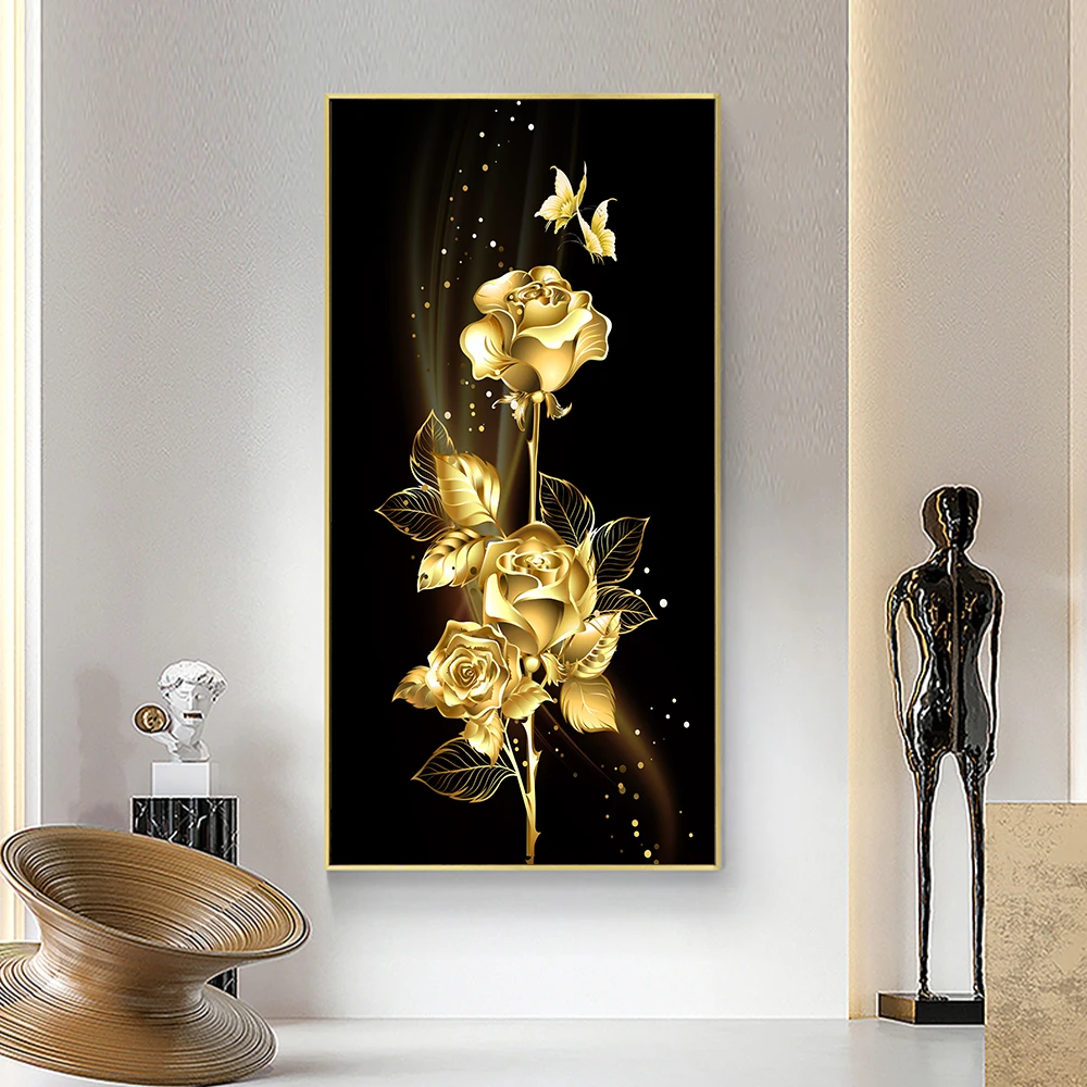 Настенная Картина на холсте с изображением бабочки, Золотой розы, цветов, плакаты и принты для украшения гостиной и дома