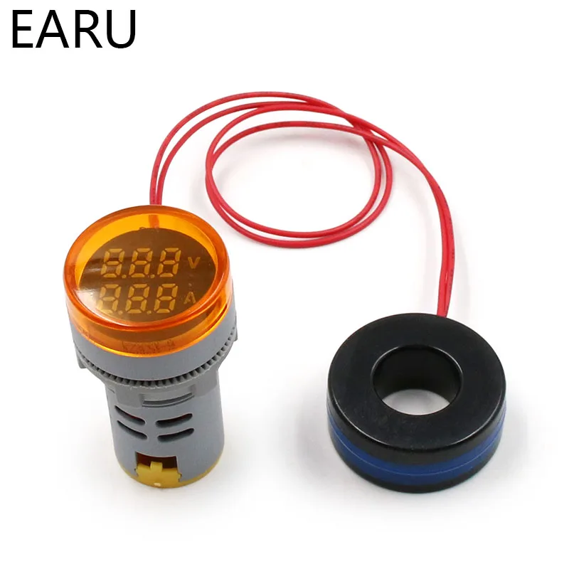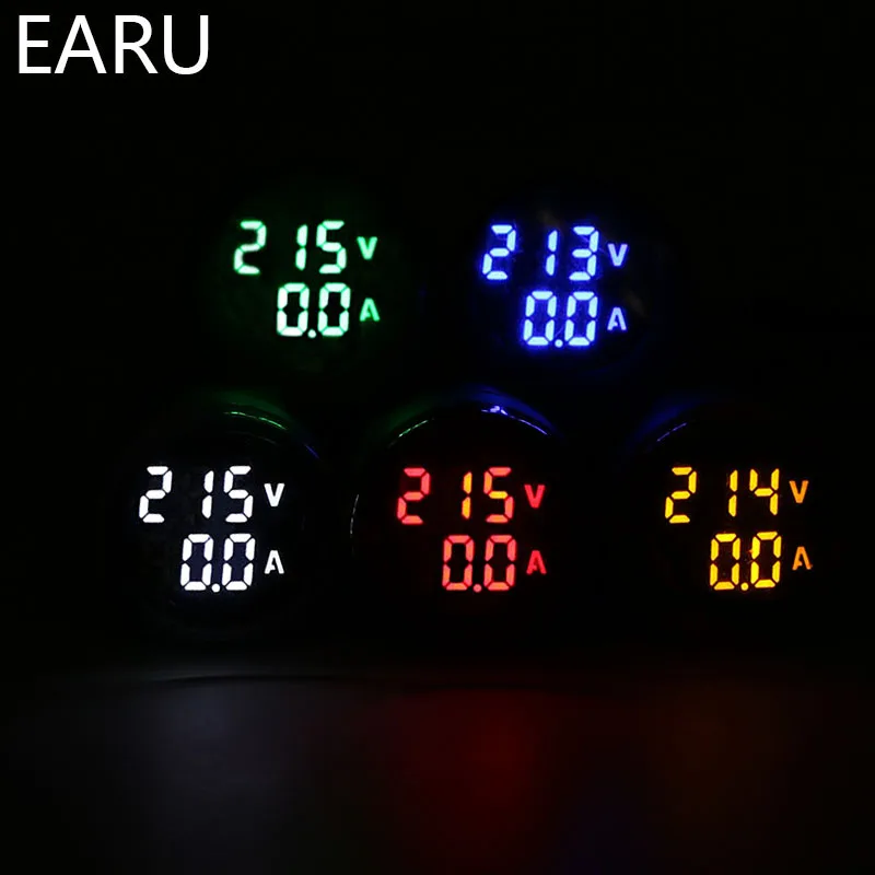 Круглый Мини цифровой вольтметр Амперметр 22 мм AC 20-500 В 0-100A тестер напряжения Ампер Измеритель двойной светодиодный индикатор лампа-пилот