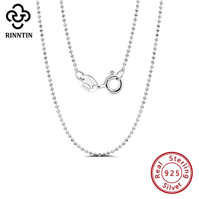 Rinntin ручной работы 925 стерлингового серебра 1,2 мм шар бусы ожерелье 40/45/50/55/60 см, для женщин, цепочка, ювелирное изделие, подарок SC24