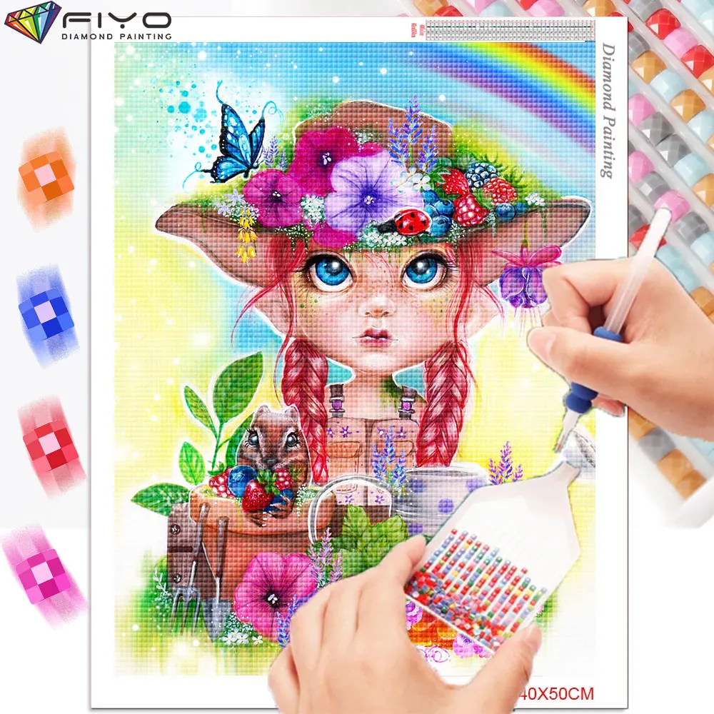 Набор для алмазной вышивки девочка FIYO 5D, полноразмернаякруглая в...