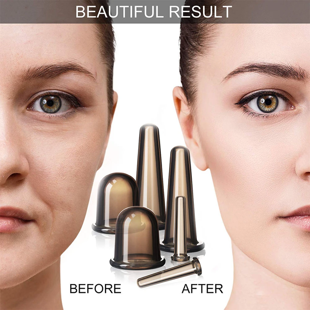 Набор банок силиконовых для лица, вакуумные банки для массажа, анти...