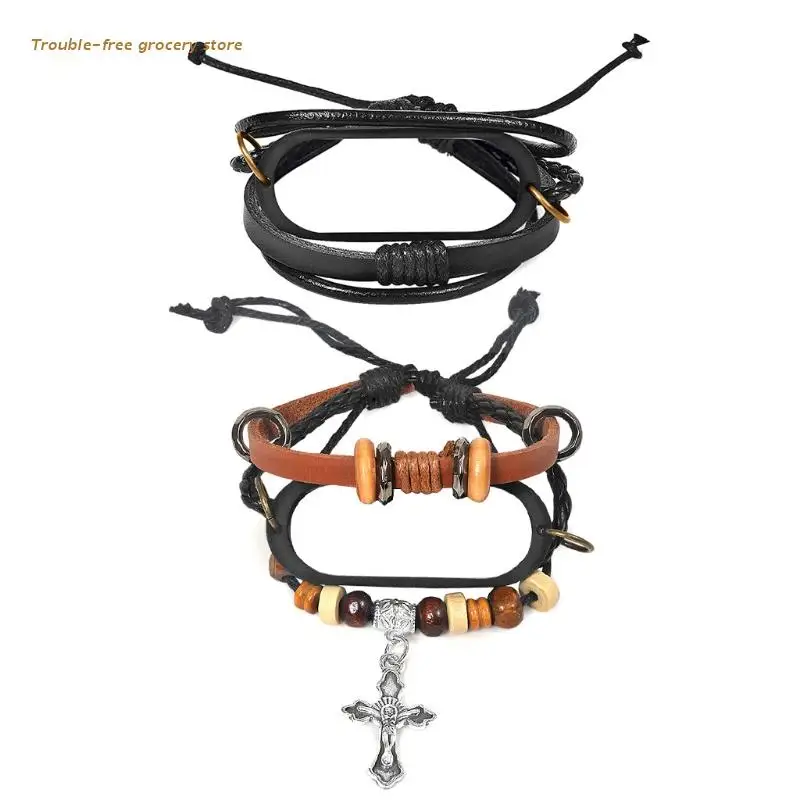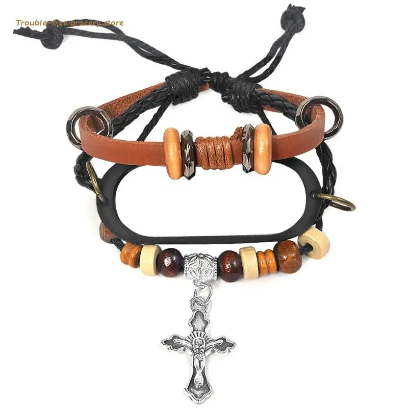 Кожаный ремешок для Mi Band 6 5, сменный ремешок для часов в стиле ретро, стильный Плетеный ремешок на запястье с резным крестом