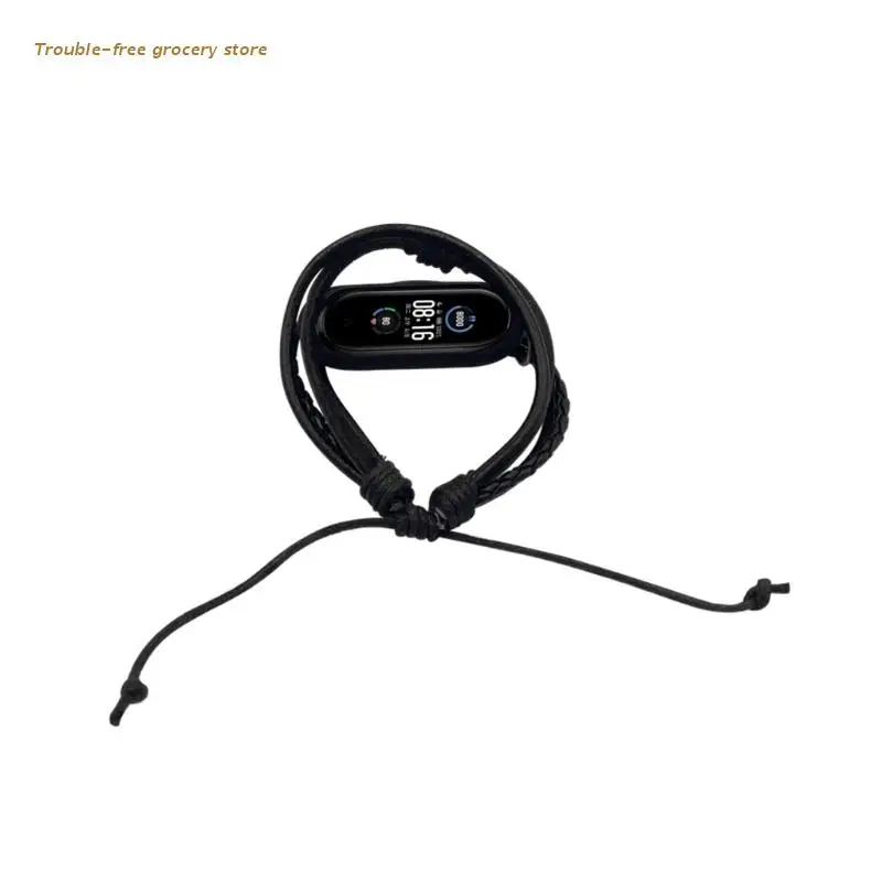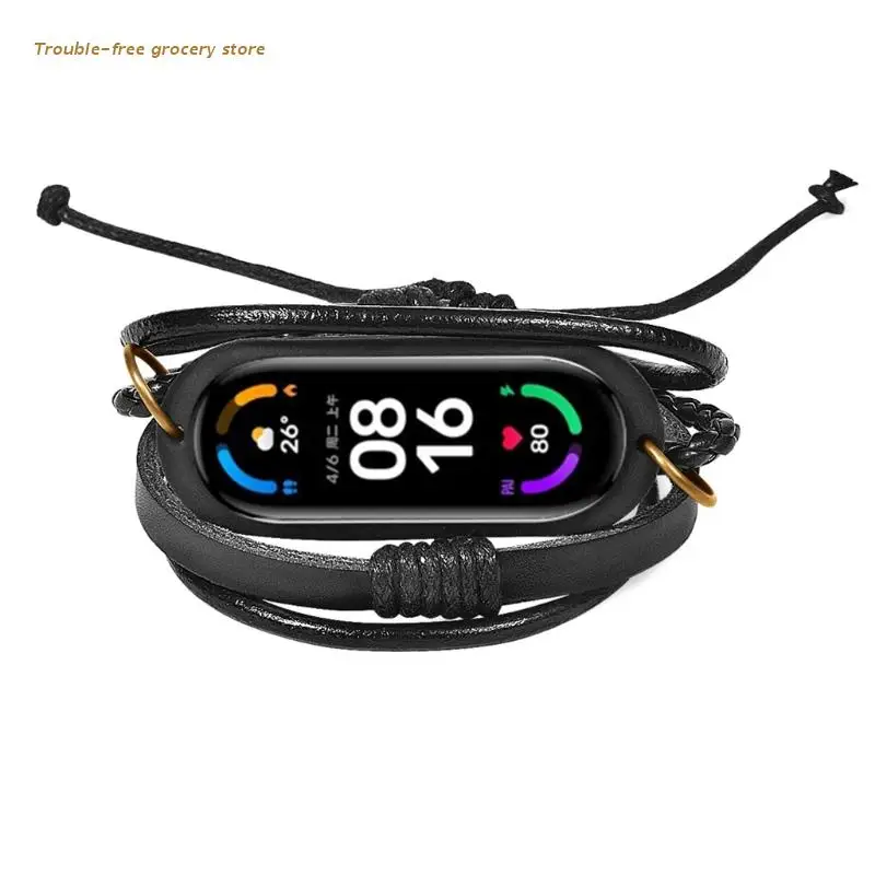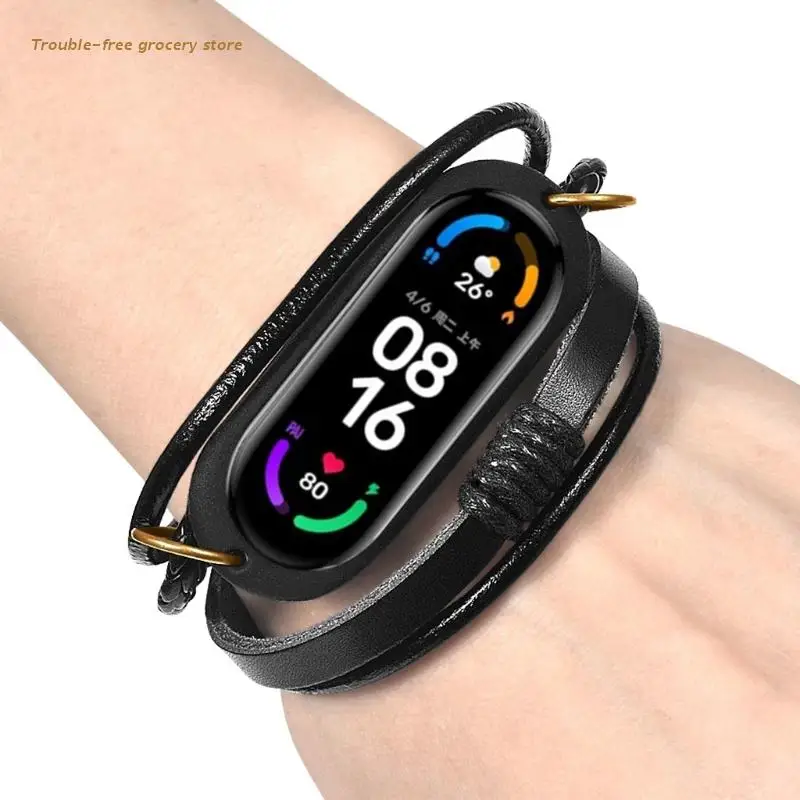 Сменный кожаный браслет для xiaomi Mi Band 5 6, Плетеный ремешок на...
