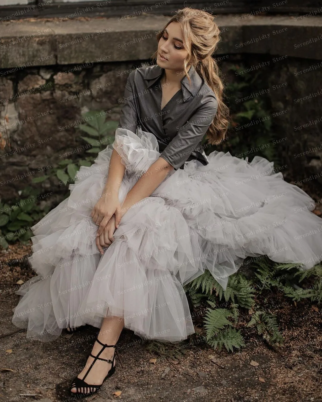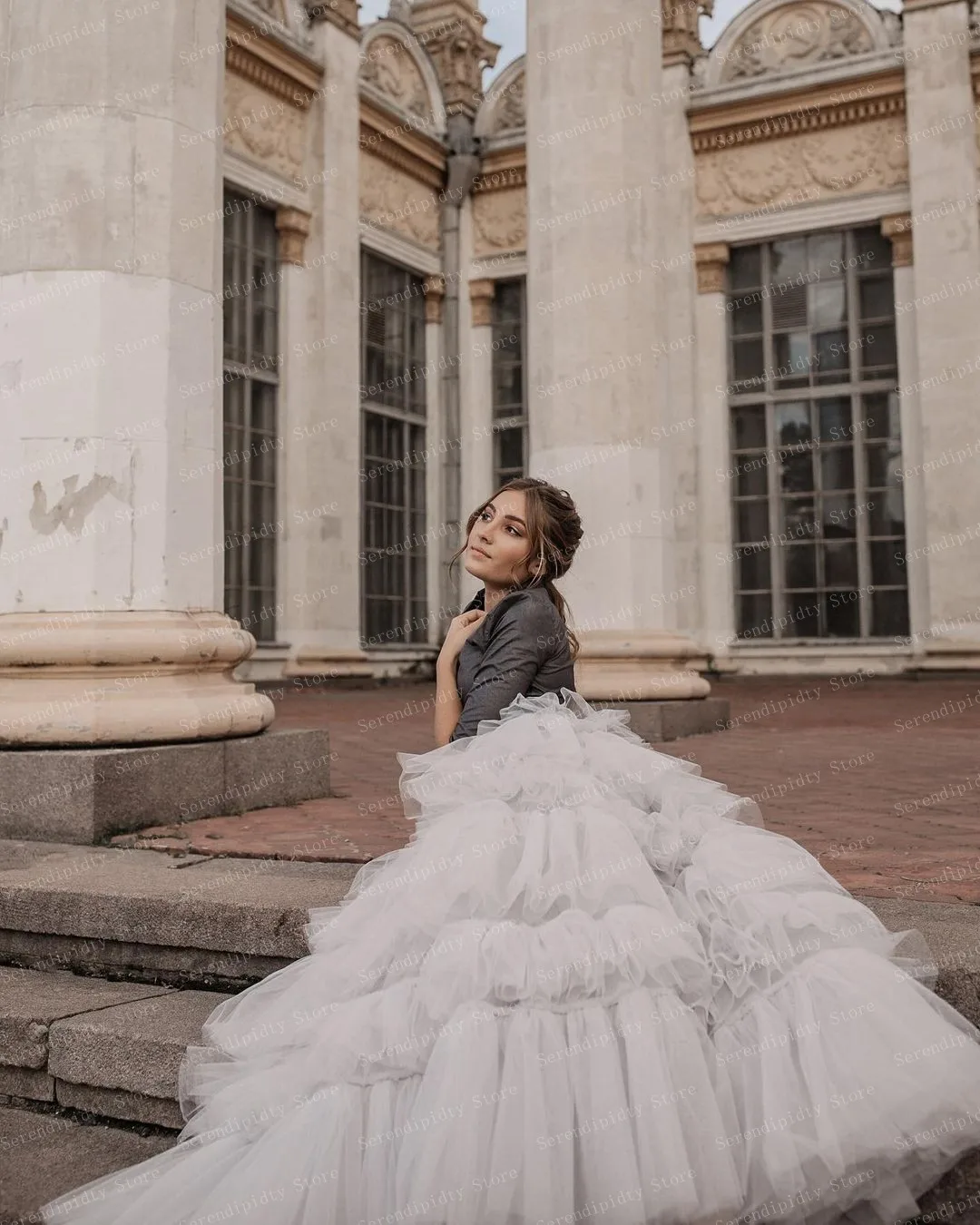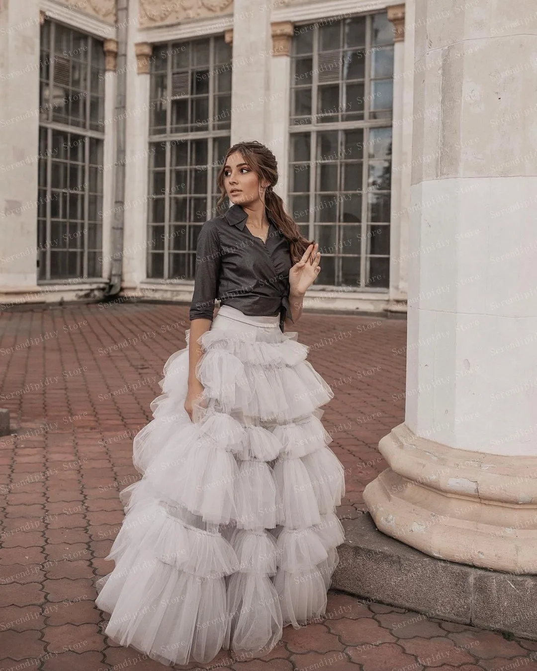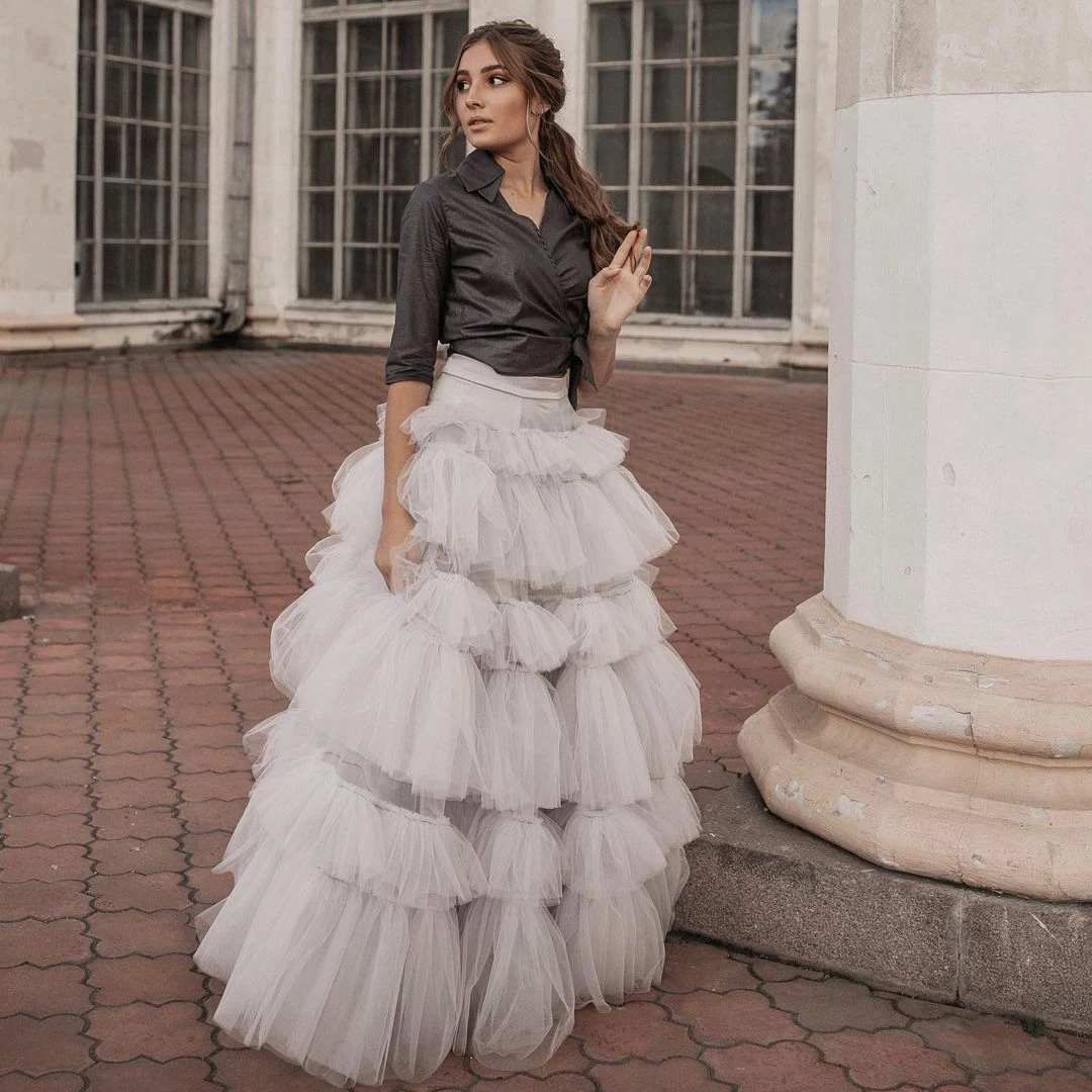 Бальное платье из белого тюля с многослойными оборками Женская плиссированная юбка с высокой талией белая женская одежда